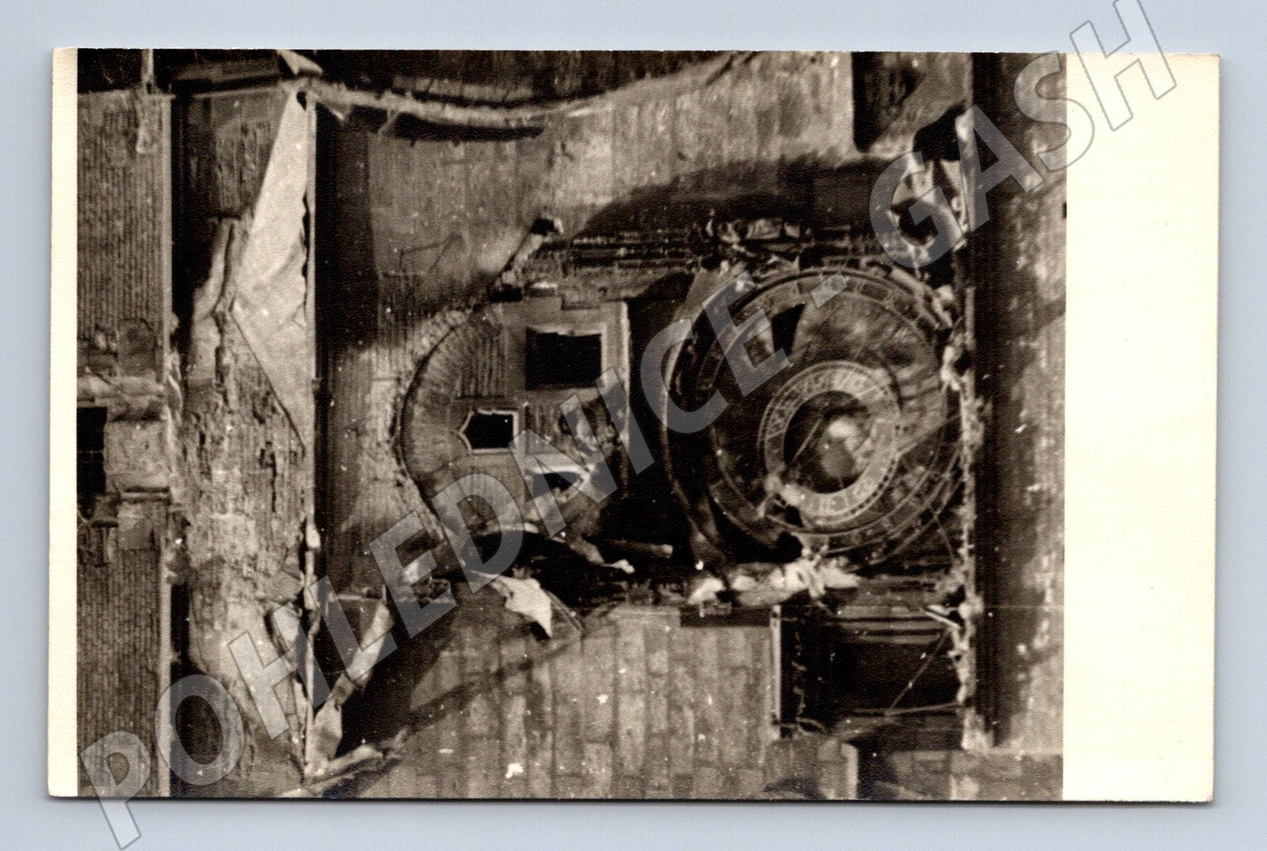 Pohlednice Praha Staroměstský orloj poškození 1945 (M4454)
