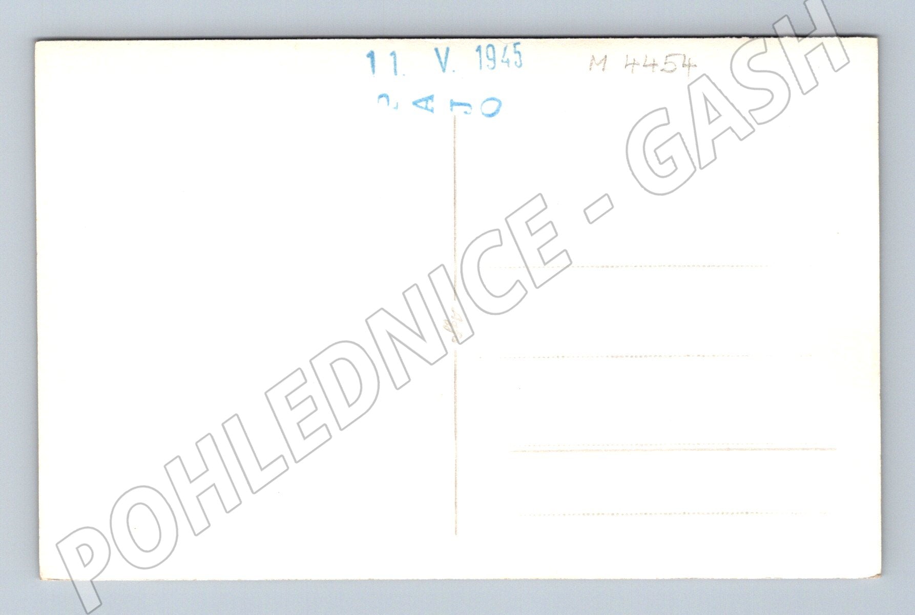 Originální historická pohlednice zobrazující poškozený pražský orloj bezprostředně po skončení druhé světové války, s razítkem datovaným 11. 5. 1945. Pohlednice zachycuje autentický stav významné pražské památky v době krátce po květnovém povstání a osvobození Prahy. Jedná se o vzácný sběratelský kus vhodný pro milovníky historie, památek i válečné tématiky. Zadní strana je čistá, bez textu, pouze s datem. Velmi dobrý stav odpovídající stáří pohlednice.