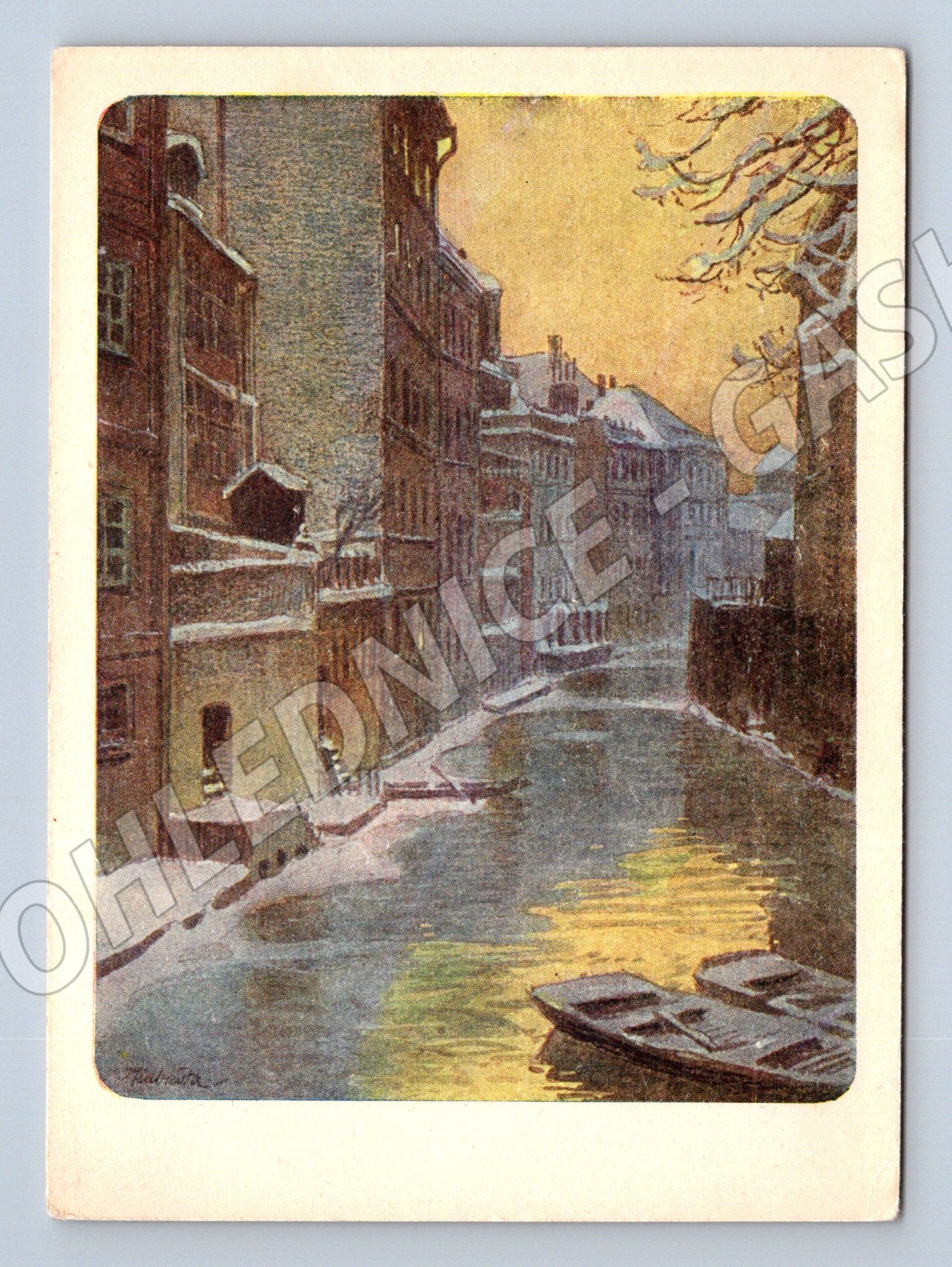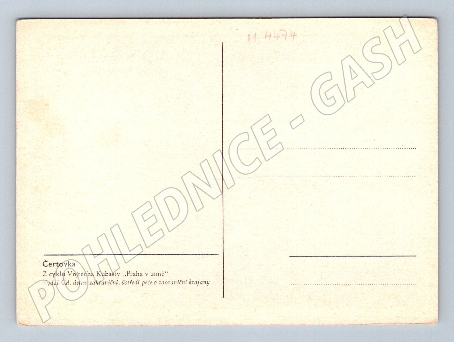 Originální pohlednice s názvem Čertovka z cyklu Vojtěcha Kubašty Praha v zimě . Pohlednice zachycuje zimní atmosféru pražské Čertovky s typickými domy a zasněženými detaily. Barevná litografie, vydal Český ústav zahraniční, ústředí péče o zahraniční krajany. Pohlednice je neprošlá, ve velmi pěkném stavu, klasický malý formát. Vhodná pro sběratele historických pohlednic nebo milovníky Prahy.