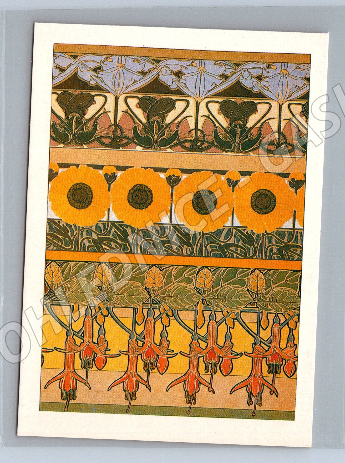 Umělecká pohlednice s motivem dekorativní secese od Alphonse Muchy, inspirována jeho slavnou sérií Documents Décoratifs z roku 1902. Pohlednice zachycuje stylizované rostlinné vzory a květinové ornamenty v typickém Muchově stylu. Pohlednice je nepopsaná, ve výborném stavu, vhodná pro sběratele umění nebo milovníky secesních dekorací. Vydal Parkland Verlag jako součást alba 30 uměleckých pohlednic. Rozměr standardní, zadní strana s místem pro text a známku.