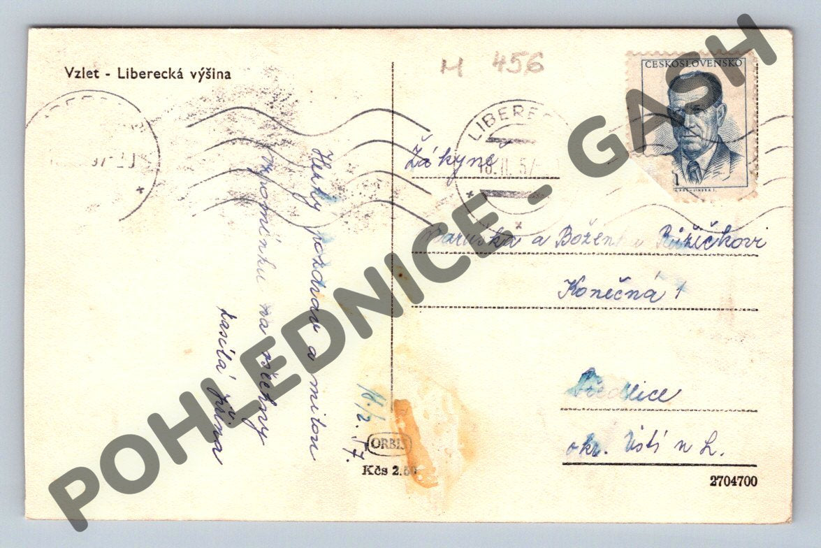 Nabízím starou pohlednici zobrazenou v černobílém provedení s motivem věže a historické budovy obklopené stromy, která je označena jako Vzlet - Liberecká výšina . Pohlednice je opatřena poštovní známkou Československo a datována rokem 1951. Na zadní straně je rukopisný pozdrav adresovaný konkrétním osobám. Pohlednice je v zachovalém stavu s typickými známkami stáří, vhodná pro sběratele a milovníky historie či architektury Libereckého regionu.