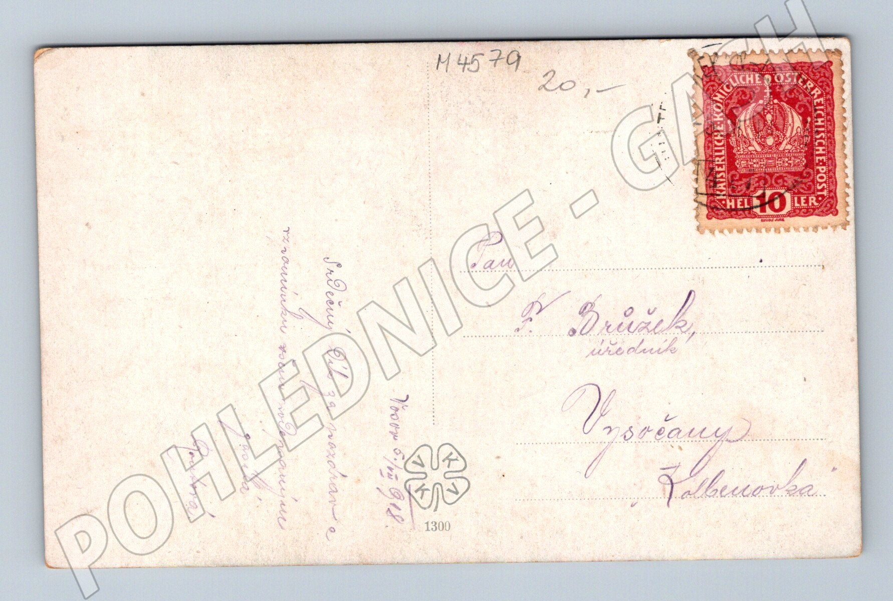 Starobylá pohlednice s kolorovanou kresbou od J. Weniga, zobrazující postavu starého mládence před venkovským domkem a rozkvetlým stromem. Na pravé straně je krátký popis v několika jazycích. Na zadní straně se nachází adresní část s původním rukopisem, razítkem a známkou Rakousko-Uherska v hodnotě 10 hellerů. Pohlednice je prošlá poštou, datováno 1910, s adresou do Vysokého Újezdce u Kolína. Skvělý sběratelský kus z období Rakousko-Uherska, vhodné pro milovníky historických a uměleckých pohlednic nebo regionálních motivů z Čech.