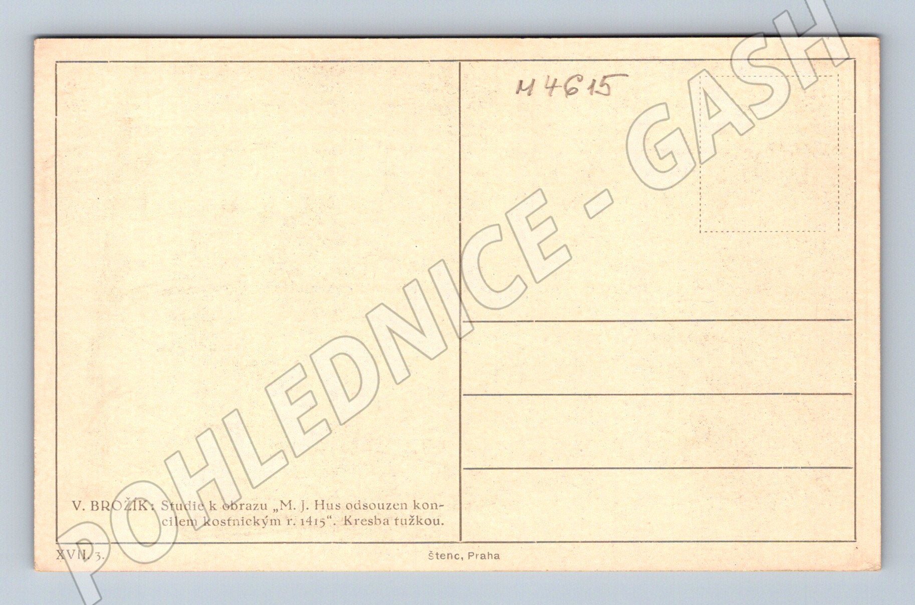 Pohlednice V. Brožík - Studie k obrazu M. J. Hus 1415