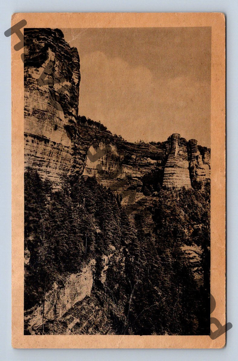 Nabízím starou pohlednici z oblasti České Švýcarsko, konkrétně s motivem Gabrielovy stezky. Pohlednice je černobílá, zřejmě datovaná do první poloviny 20. století, a zachycuje malebnou skalní scenérii typickou pro tuto oblast. Na zadní straně je razítko a natištěný popis místa, což zvyšuje její sběratelskou hodnotu. Pohlednice je v udržovaném stavu s viditelným patinou stáří, vhodná pro sběratele pohlednic a milovníky přírodních krás České republiky.