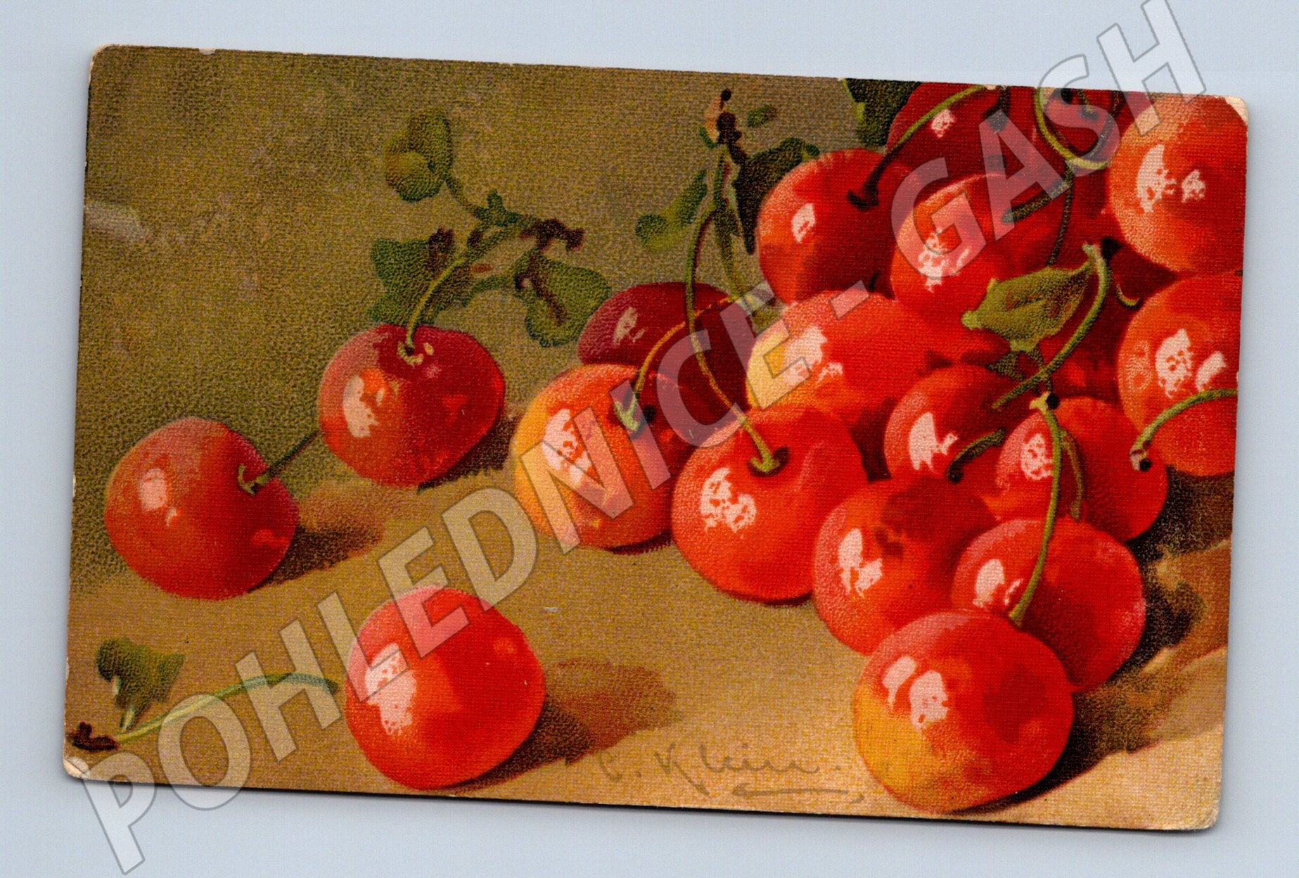 Nabízím starou ilustrovanou pohlednici s motivem třešní, signovanou a datovanou rokem 1928. Pohlednice má krásnou malířskou kvalitu, na přední straně je vyobrazeno několik červených třešní s listy. Ze zadní strany je nepopsaná, s drobným opotřebením odpovídajícím stáří. Ideální do sbírky historických ovocných nebo malířských motivů.