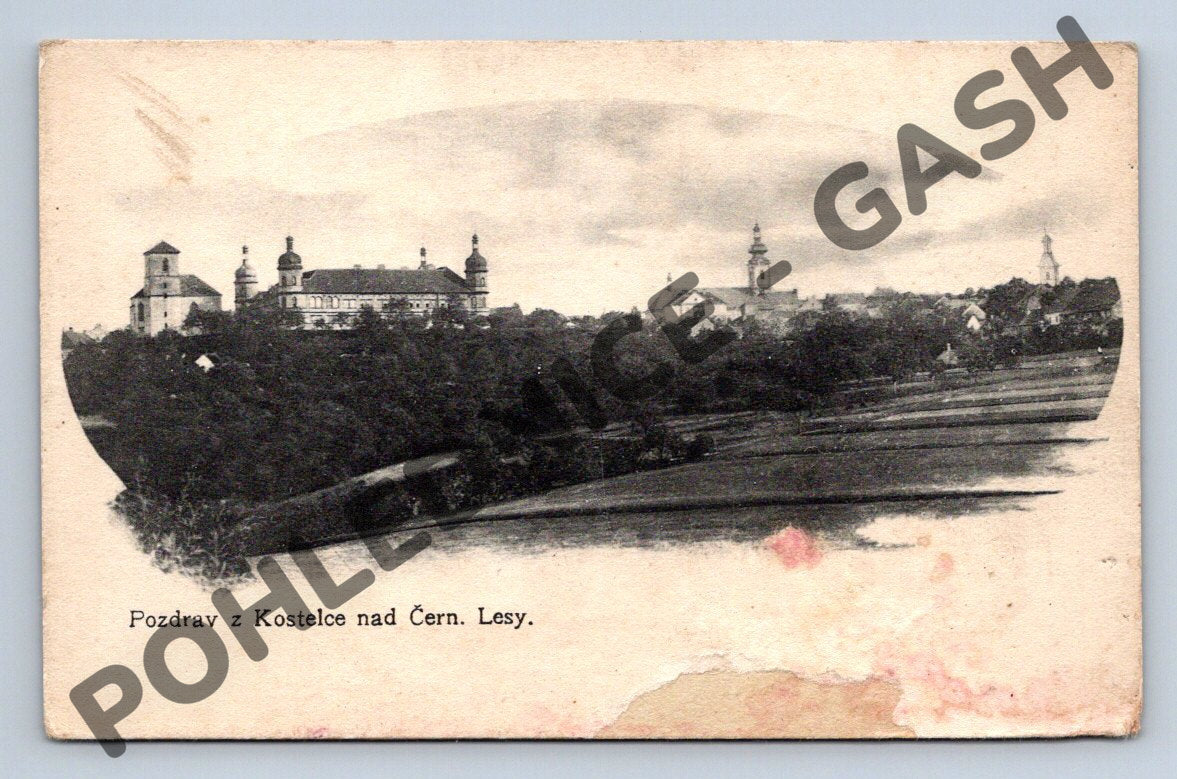 Kostelec nad Černými lesy - historická pohlednice panoráma města