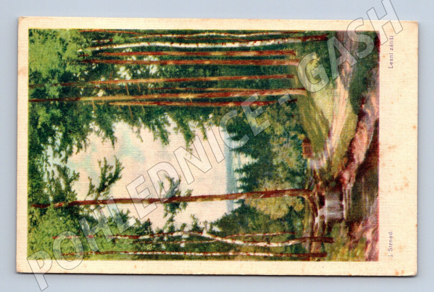 Starobylá malovaná pohlednice – Lesní zákoutí, J. Šimál