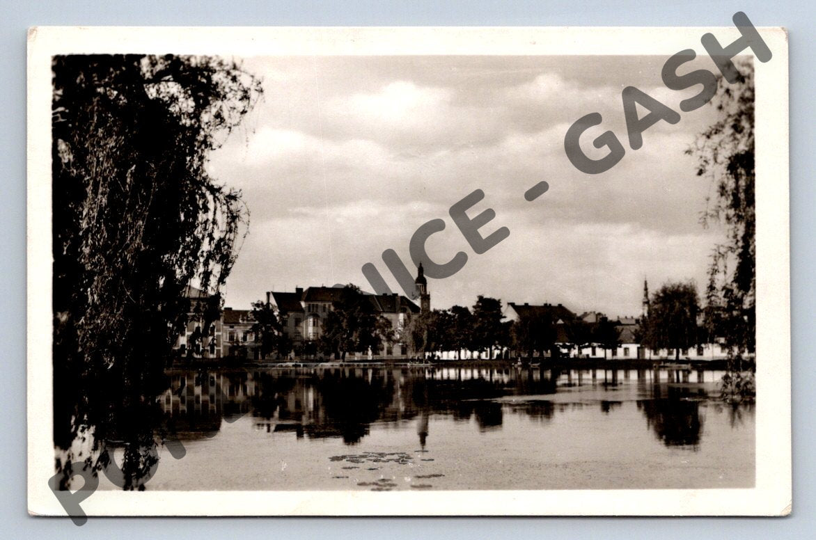 Nabízím starou pohlednici zobrazující město Prostějov s krásným výhledem na jezero a historické budovy ve městě. Pohlednice je černobílá, zachycuje klidnou atmosféru města s odrazem stromů a budov na hladině vody. Na zadní straně je vytištěn název města PROSTĚJOV a značka vydavatele ORBIS. Pohlednice je v dobrém stavu, bez viditelných poškození. Ideální pro sběratele, milovníky historie nebo fanoušky města Prostějov.