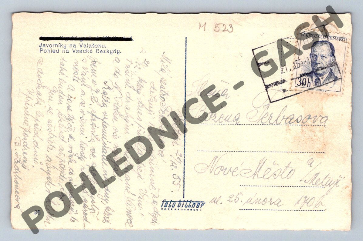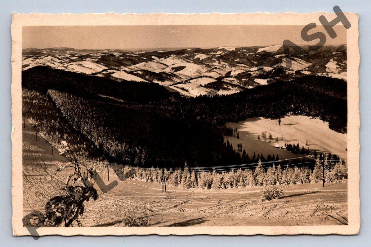 Nabízím originální starou pohlednici s motivem zimní krajiny z oblasti Javorníků na Valašsku. Pohled je směrem na Vsacké Beskydy, zachycené v černobílém provedení, které krásně vystihuje zasněžené hory a lesy. Pohlednice pochází z období do roku 1950 a je opatřena československou známkou a ručně psaným věnováním. Pohlednice je v pěkném zachovalém stavu s běžnými známkami stáří na okrajích. Ideální sběratelský kousek pro milovníky přírody, historie a poštovních suvenýrů z Československa.