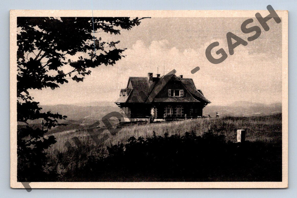 Nabízím starou pohlednici zachycující horskou chatu Kohútka na Javorníkách ve Valašsku, ležící v nadmořské výšce 908 metrů. Pohlednice je v černobílém provedení, zachycuje malebnou krajinu s horskou chatou v popředí a výhledem do okolních kopců. Na zadní straně pohlednice je text v němčině i češtině, lokalizující místo a výšku. Ideální sběratelský kousek pro milovníky české krajiny a historie regionu Valašska. Stav pohlednice odpovídá stáří, bez poškození textu či obrazu.