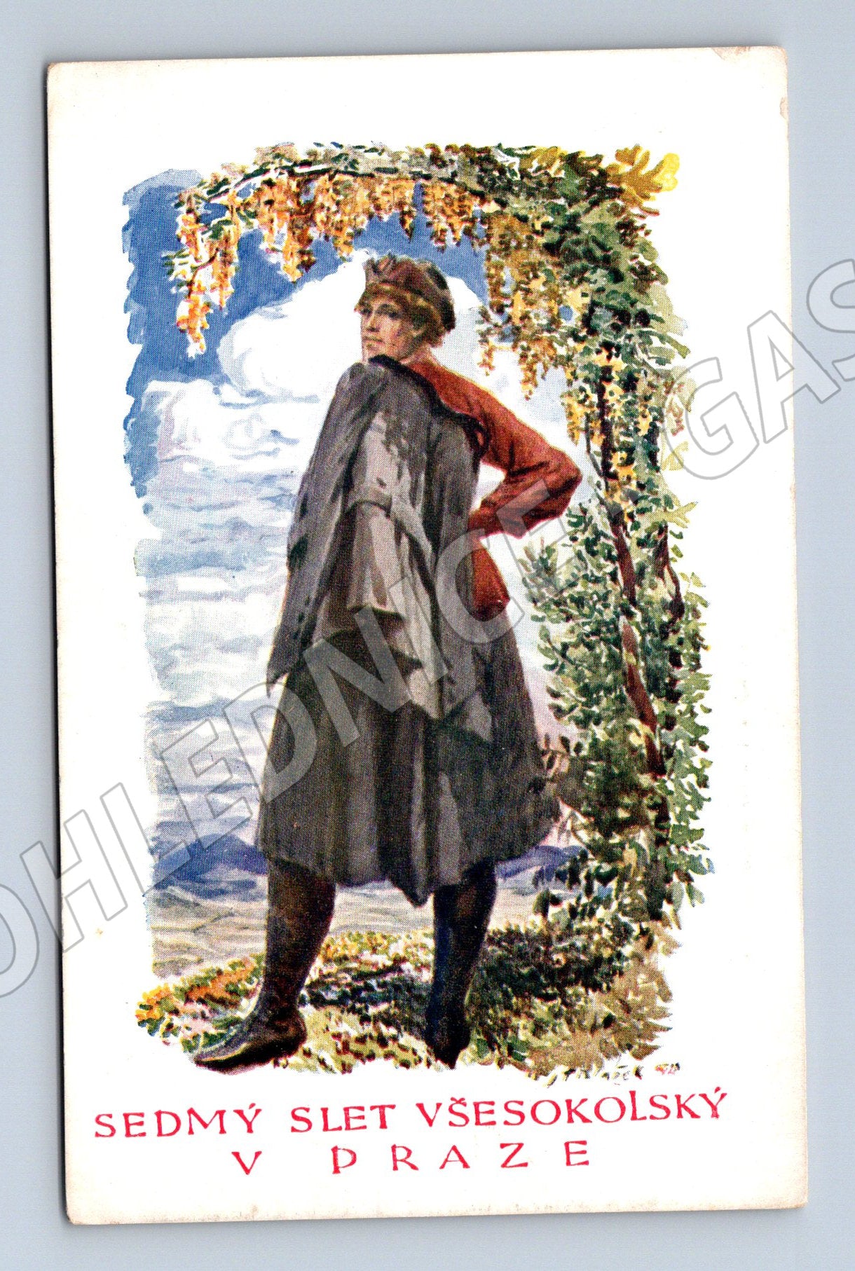 Originální pohlednice k VII. všesokolskému sletu v Praze v roce 1920. Na přední straně je barevná ilustrace sokola v kroji od malíře J. Blažka. Text po straně uvádí: Sedmý slet všesokolský v Praze . Zadní strana je určena pro korespondenci, nese označení Dopisnice k VII. sletu všesokolskému v Praze 1920 a údaje o vydavateli Ferd. Vlas, Praha. Pohlednice je v zachovalém stavu, vhodná pro sběratele i milovníky české historie a sokolského hnutí.