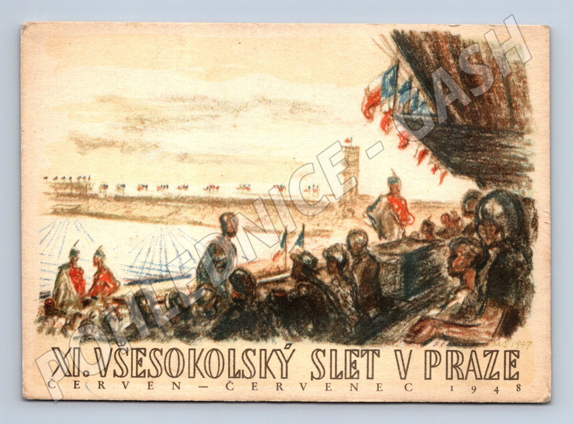 Pohlednice XI slet Praha 1948 barevná neprošlá (M5402)