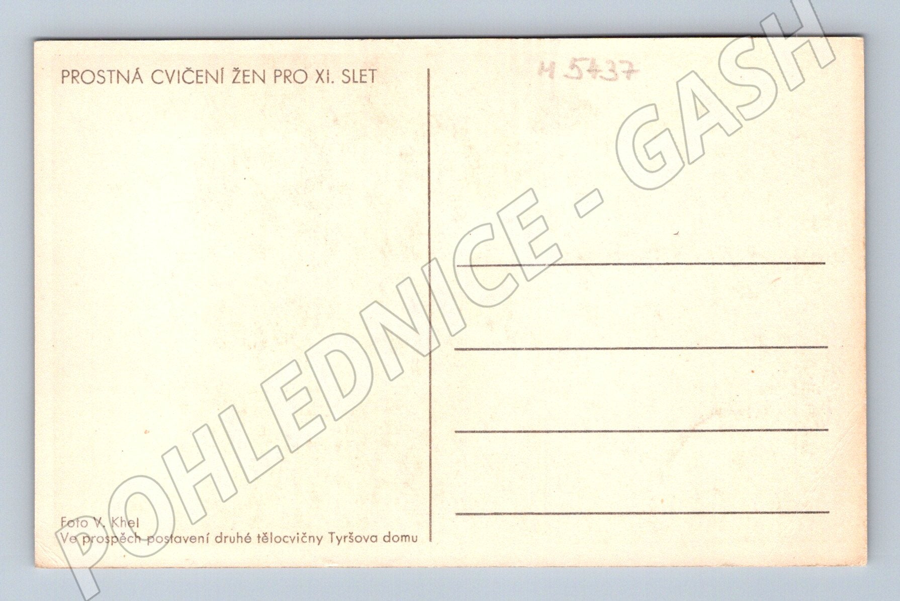 Originální historická pohlednice s názvem Prostná cvičení žen pro XI. slet . Fotografii pořídil V. Khel a pohlednice byla vydána ve prospěch postavení druhé tělocvičny Tyršova domu. Na lícové straně najdete černobílý snímek skupiny žen, které předvádějí skupinové cvičení pod širým nebem. Pohlednice je bez známky a razítka, ve velmi dobrém sběratelském stavu. Skvělý kousek pro milovníky sportovní historie, Sokolských sletů a sběratele tematických pohlednic.