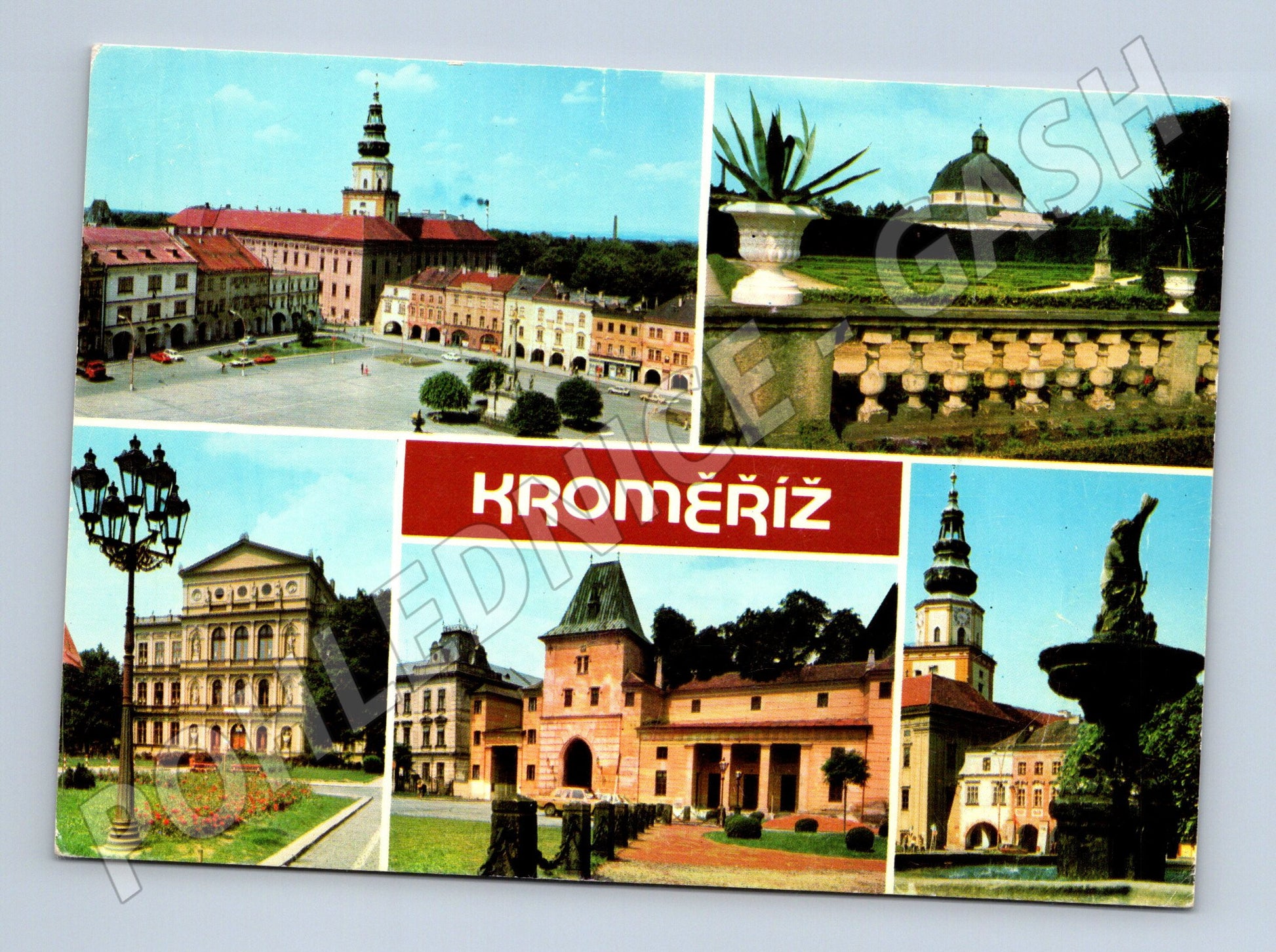 Originální barevná pohlednice s několika motivy města Kroměříž, okresního města a městské památkové rezervace. Pohlednice zachycuje významné historické památky, včetně náměstí, zámku, zahrad a dalších architektonických skvostů. Na zadní straně naleznete popis města, prostor pro napsání adresy, cenový údaj a vydavatele. Pohlednice je v dobrém stavu, bez známky použití. Výrobce: Panorama Praha, fotografie: D. Veliká, vydáno po roce 1950. Skvělý sběratelský kousek z Moravy.