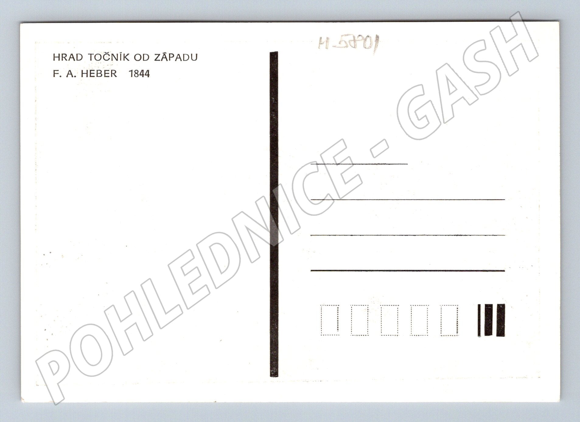 Nabízím sběratelskou pohlednici s motivem hradu Točník, z pohledu od západu. Originální kresba od F. A. Hebera z roku 1844 zachycuje romantický pohled na historickou stavbu, která se tyčí na pahorku nad okolní krajinou. Pohlednice je v dobrém stavu a vhodná jak do sbírky, tak jako dárek pro milovníky českých hradů a historie. Zadní strana pohlednice je neprošlá.