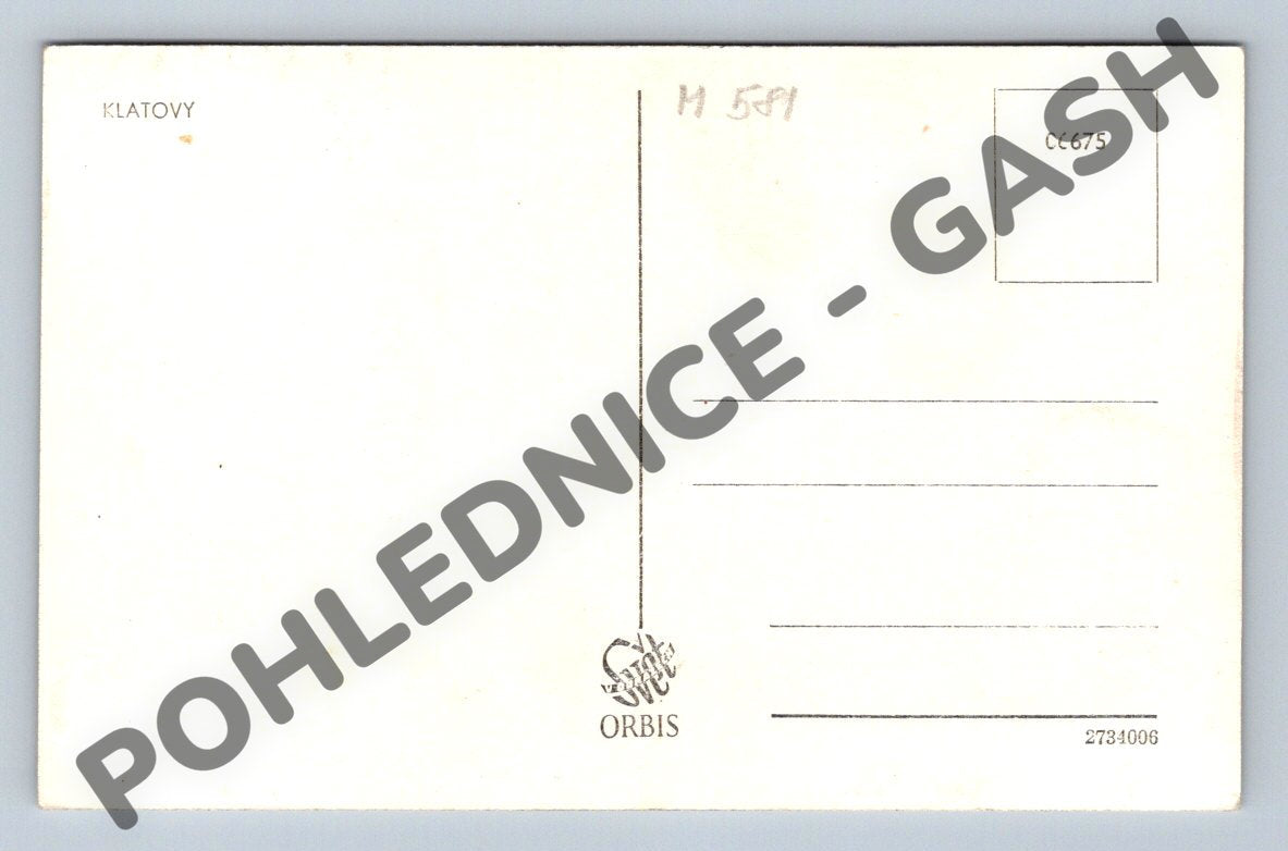 Starší černobílá pohlednice zobrazující zimní panoráma historického města Klatovy. Na obrázku jsou patrné zasněžené střechy a výrazné kostelní věže, které dominují městské siluetě. Pohlednice je nepsaná, což umožňuje novému majiteli využít ji k vlastnímu psaní či sbírání. Na zadní straně je natištěný název místa Klatovy a razítko vydavatele ORBIS. Pohlednice je v dobrém stavu s mírným zažloutnutím papíru, vhodná do sbírky starších pohlednic z České republiky nebo pro milovníky historických městských pohledů.