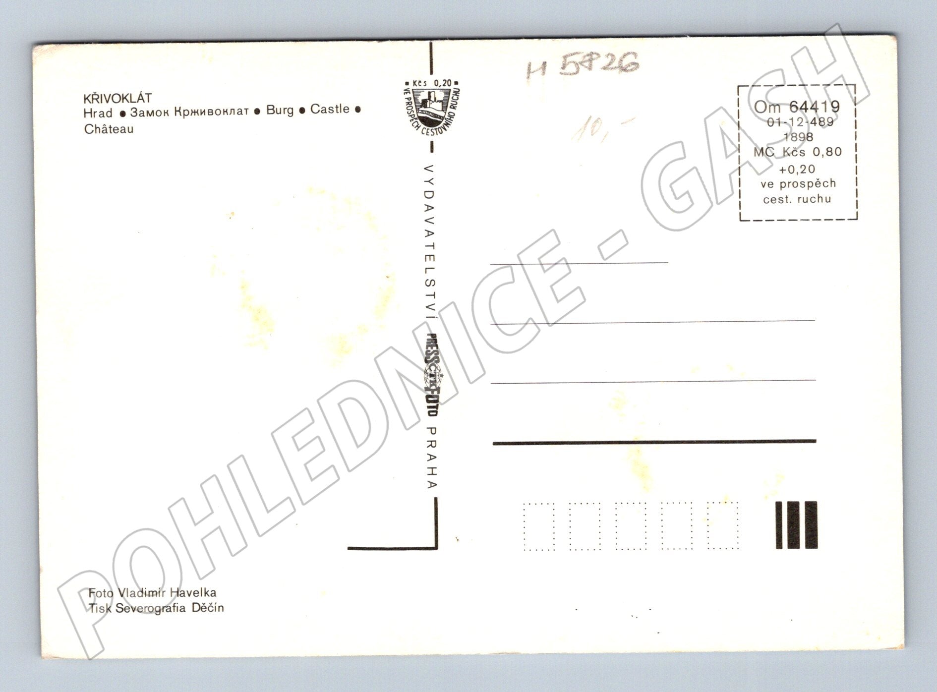 Originální pohlednice s motivem hradu Křivoklát, jednoho z nejstarších a nejvýznamnějších českých královských hradů. Pohlednice zachycuje malebný pohled na hradní areál obklopený lesy a věž s charakteristickou červenou střechou. Na zadní straně jsou informace o objektu v několika jazycích a tištěné údaje o vydavateli. Stav pohlednice je velmi dobrý, čistá, bez popisu, vhodná do sbírky, pro milovníky českých památek nebo k zaslání.