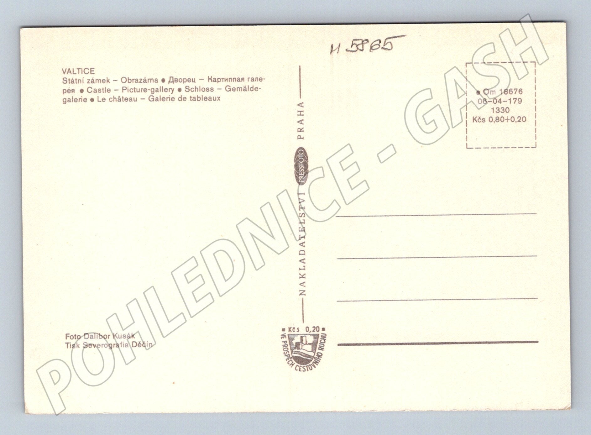 Originální pohlednice zachycující obrazárnu ve státním zámku Valtice. Na fotografii je vidět bohatě zdobený interiér galerie s historickými obrazy a barokní výzdobou stropu i stěn. Pohlednice nebyla použita, zadní strana je čistá s vyznačeným místem pro známku a adresu. Vydal Nakladatelství Praha, foto Dalibor Kusák, tisk Severografia Děčín. Skvělý sběratelský kousek pro milovníky zámků nebo historie moravských památek.