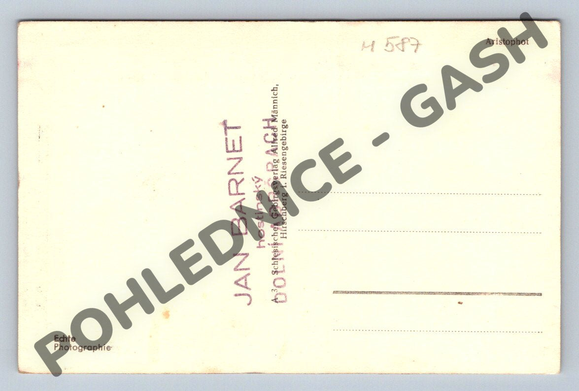 Nabízím zajímavou starou pohlednici zobrazující skalní útvar známý jako Homole cukru v Adršpachu, malebné město v České republice proslulé svými pískovcovými skalami. Pohlednice je černobílá, zachycuje dominantní skalní masiv uprostřed lesního prostředí. Na zadní straně pohlednice je místo pro adresu, razítko vydavatele a název místa. Vhodné pro sběratele pohlednic s tématikou přírodních památek a skalních útvarů. Stav je velmi dobrý s mírnými známkami stáří, bez výrazných poškození.