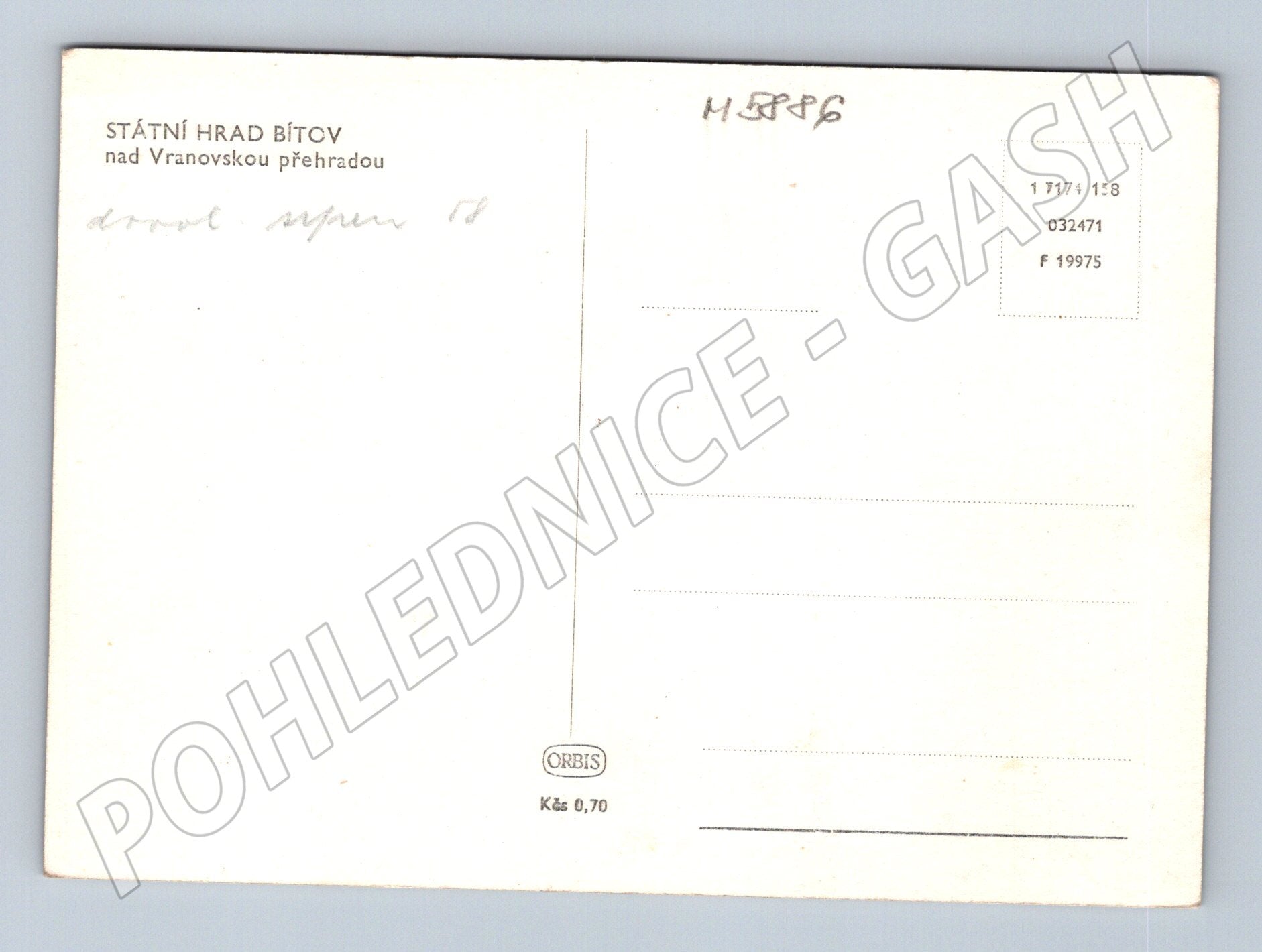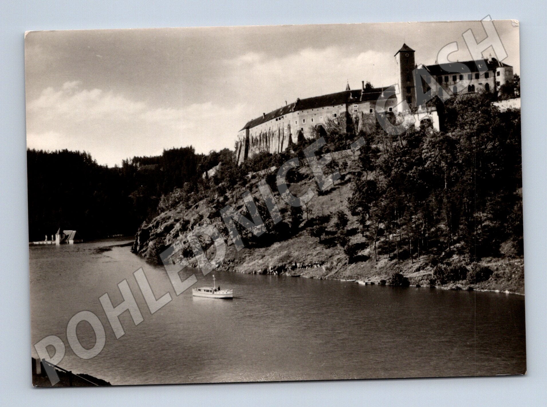Originální černobílá pohlednice zobrazující státní hrad Bítov nad Vranovskou přehradou. Na pohlednici je krásně vidět hrad situovaný na kopci nad vodní hladinou a část přehrady se člunem v popředí. Na zadní straně je předtištěný popis Státní hrad Bítov nad Vranovskou přehradou . Jedná se o klasickou pohlednici z edice ORBIS, cena 0,70 Kčs. Pohlednice je ve velmi dobrém, sběratelském stavu, bez poškození a zápisu. Skvělý doplněk do sbírky nebo jako dárek pro milovníky českých hradů.