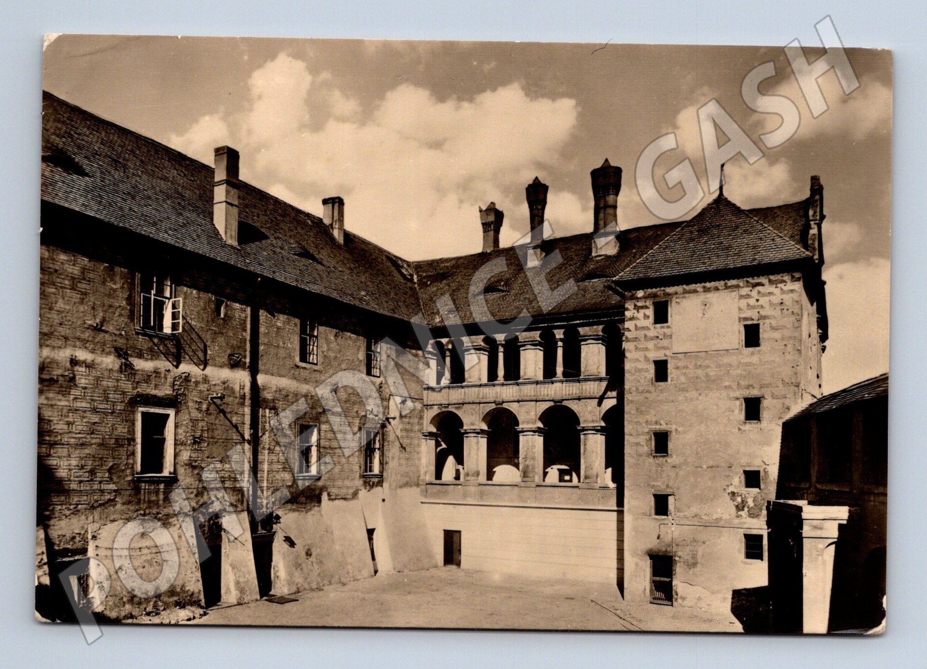 Originální stará černobílá pohlednice zachycující část areálu Státního zámku Mělník. Na pohlednici je patrný vnitřní dvůr s arkádami a charakteristickými komíny, což je výrazný architektonický prvek tohoto českého památkově chráněného objektu. Na zadní straně je uveden název Státní zámek MĚLNÍK a místo pro adresu. Vydavatel Orbis, cena 0,50 Kčs. Pohlednice je ve velmi dobrém stavu, pouze s drobnými známkami stáří a drobným ohybem v rohu. Ideální sběratelský kousek pro milovníky českých památek a historických pohlednic.
