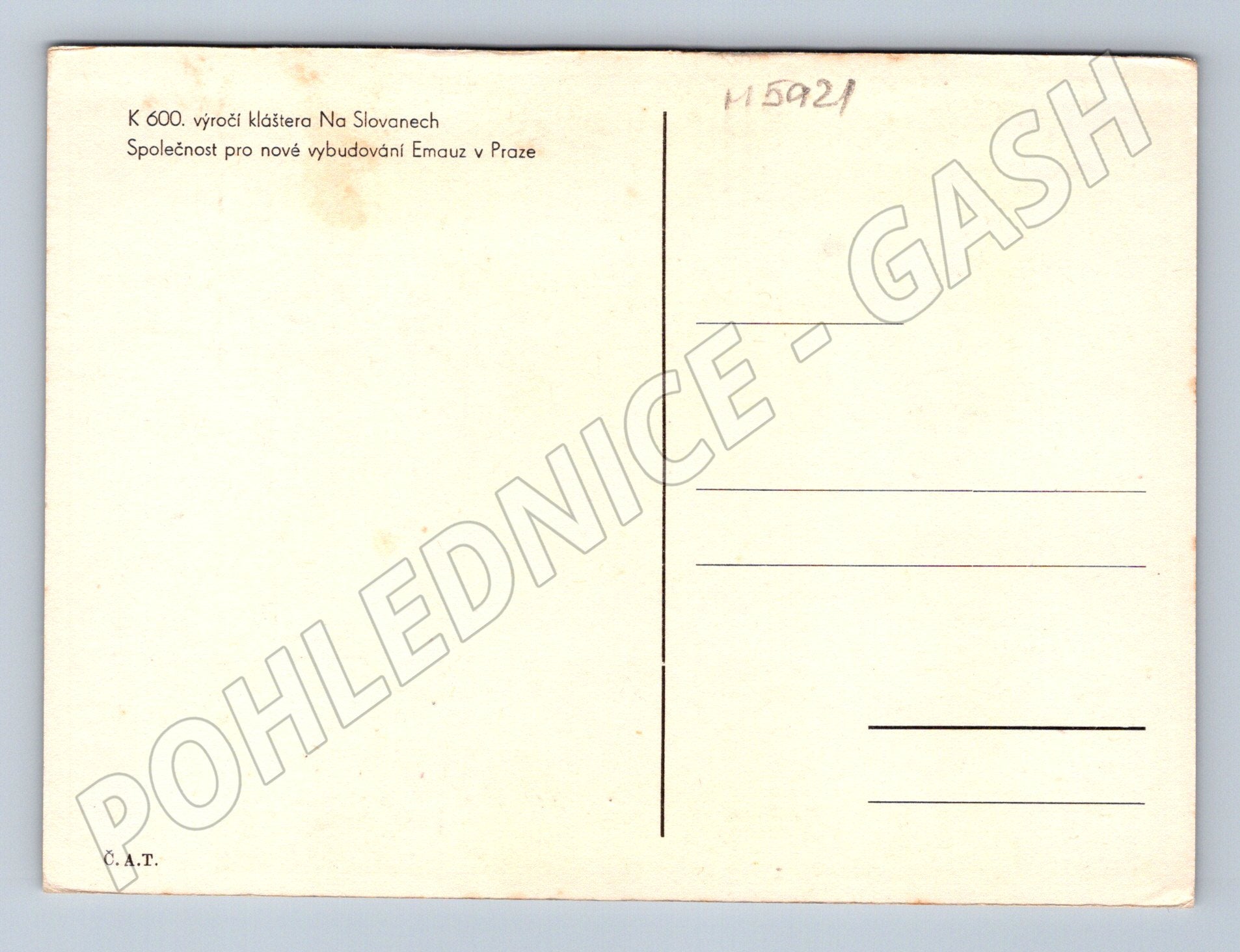 Pohlednice Emauzy Praha 1945, K. Gabriel, k 600. výročí kláštera