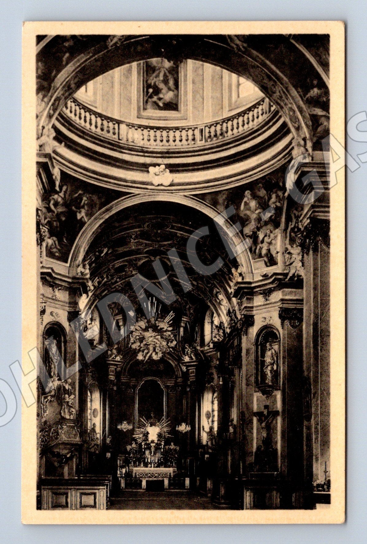 Sv. Kopeček u Olomouce – stará pohlednice, interiér kostela