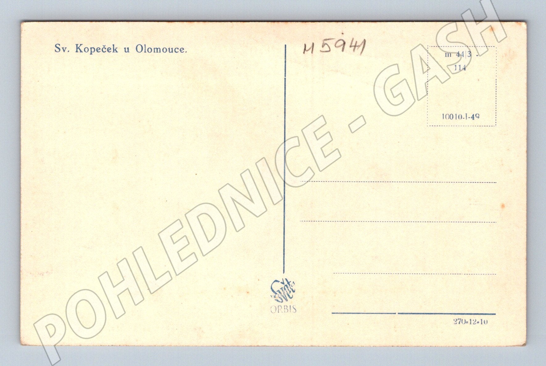 Originální stará pohlednice zachycující interiér kostela na Svatém Kopečku u Olomouce. Pohlednice pochází z období před rokem 1950, vydavatel ORBIS, s typickým uměleckým a náboženským výrazem. Na přední straně detailně vyobrazený bohatě zdobený oltář. Zadní strana s označením Sv. Kopeček u Olomouce a tištěnými prvky pro poštovní použití. Výborný stav odpovídající stáří, bez popisu či poškození. Ideální pro sběratele historických nebo církevních pohlednic.