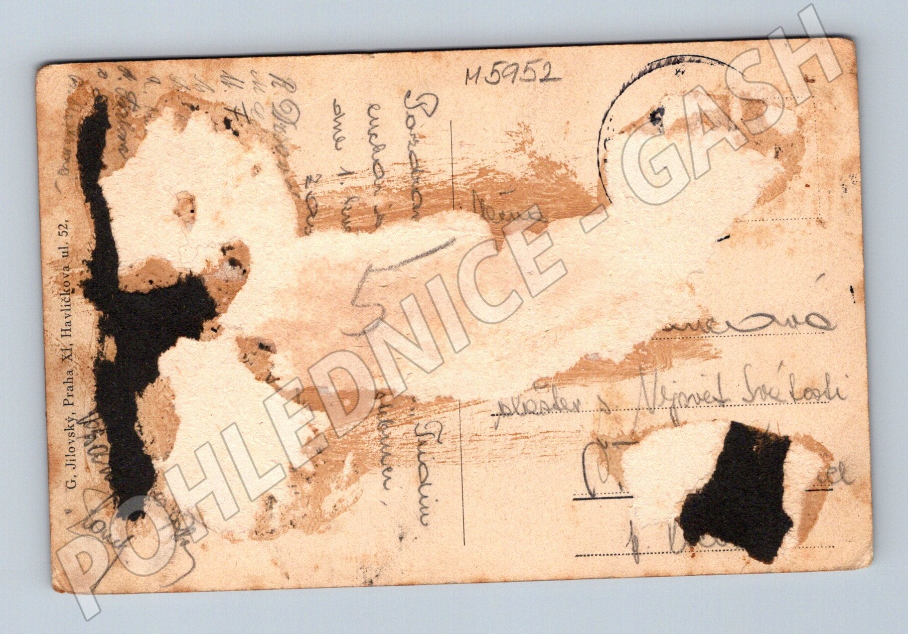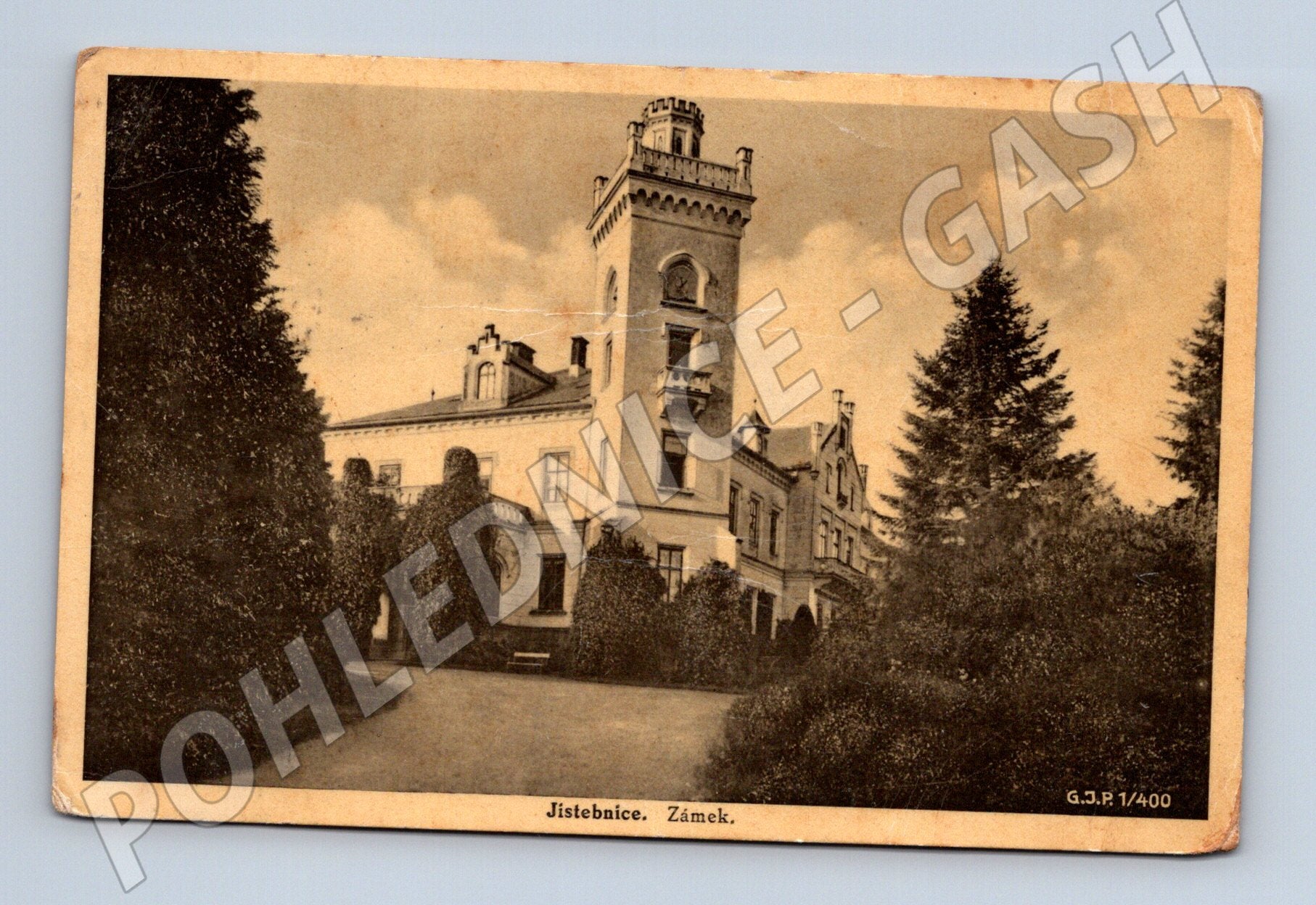 Originální stará pohlednice s motivem zámku Jistebnice. Pohlednice je černobílá, v dolní části je uveden popis Jistebnice, Zámek . Jedná se o historické vydání od vydavatele G. Jilovský, Praha, Havlíčkova ul. 52. Zadní strana nese stopy silného stáří a používání, místy je výrazně poškozená a znečištěná, s několika fleky a oděrkami. Písmo a adresní údaje jsou částečně čitelné. Pohlednice může být zajímavým sběratelským kouskem, vhodným pro milovníky historie, místopisu či pohlednic se zámky a hrady. Rozměry standardní dobové pohlednice, celkový stav viz foto.