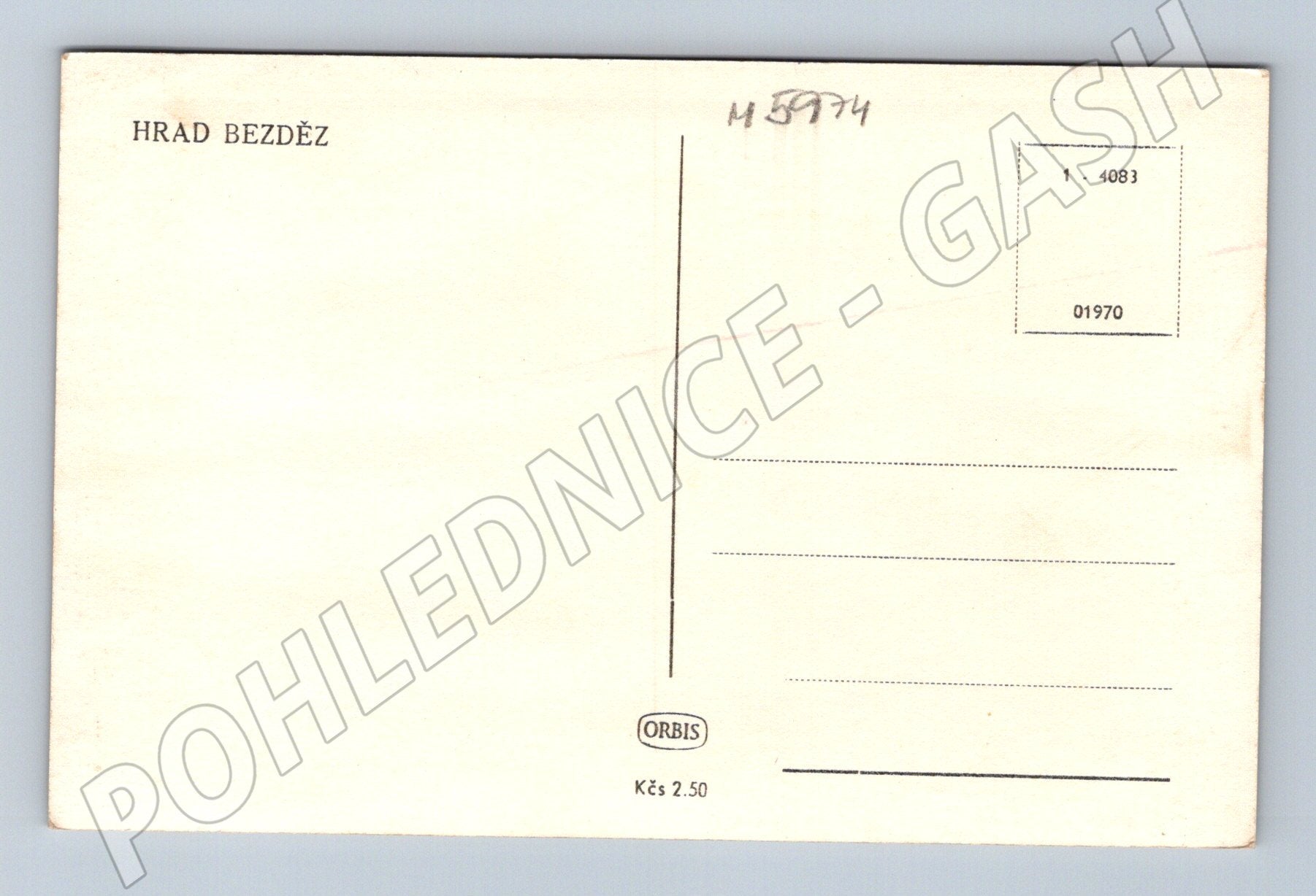 Originální stará pohlednice s motivem hradu Bezděz. Pohlednice zachycuje majestátní siluetu známého českého hradu, který se tyčí na vrcholu kopce a je dominantou okolní krajiny. Okolo hradu je vidět malebná příroda, vesnička a rybník v popředí, což vytváří působivou scenérii. Pohlednice není prošlá poštou a je v zachovalém sběratelském stavu. Zadní strana obsahuje název Hrad Bezděz , vydavatele Orbis a cenu 2,50 Kčs. Ideální přírůstek do sbírky pohlednic s tématem českých hradů a zámků.