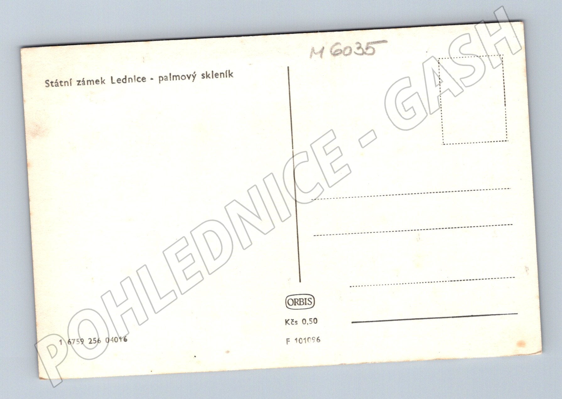 Originální pohlednice zobrazující palmový skleník Státního zámku Lednice. Tato černobílá pohlednice zachycuje interiér historického skleníku s bohatou vegetací a elegantními konstrukcemi. Zadní strana je nepopsaná, s označením vydavatele Orbis a cenou 0,50 Kčs. Skvělý sběratelský kousek pro milovníky historických památek a architektury. Stav odpovídá stáří, vhodné pro sběratelské účely či jako stylová dekorace.