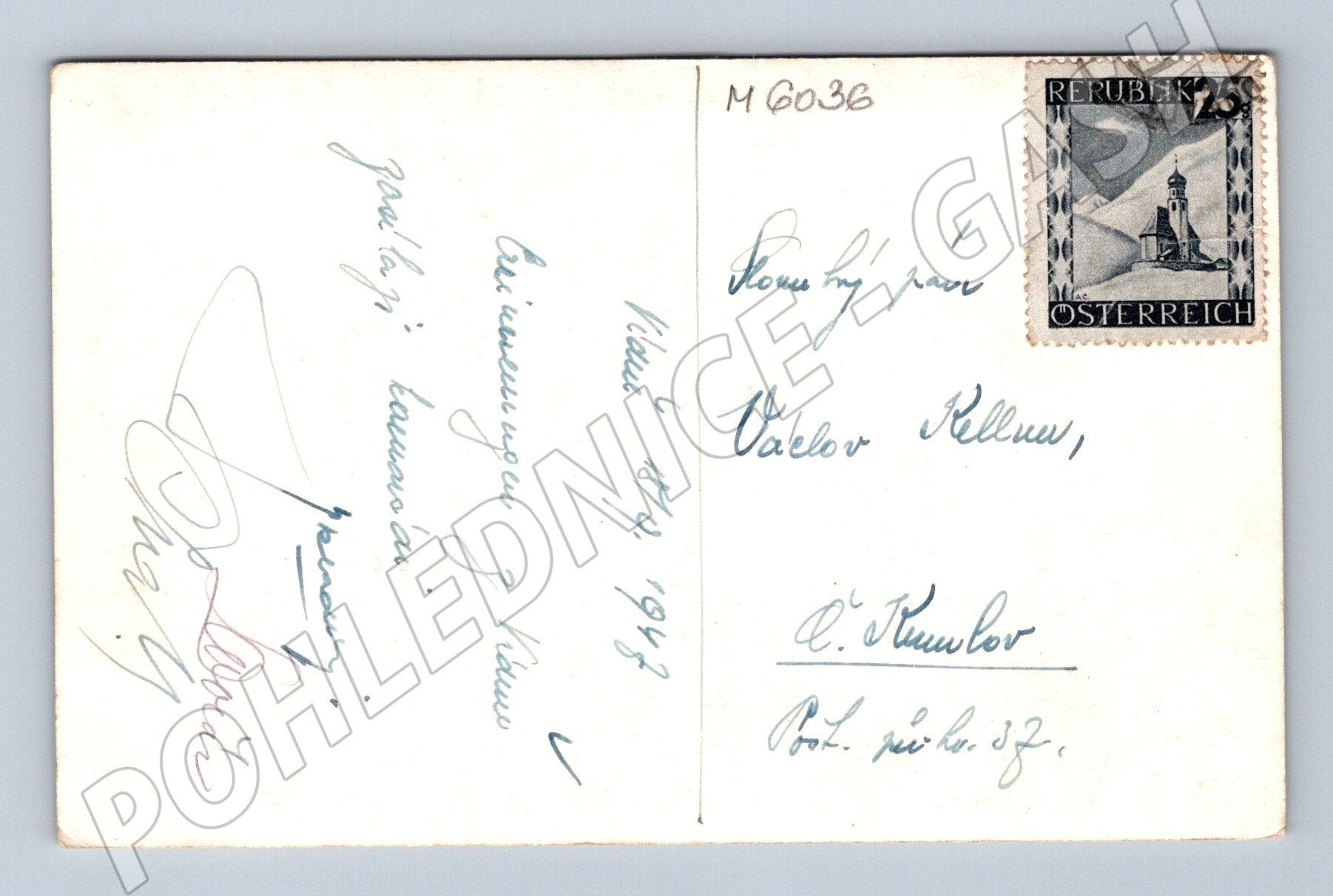 Originální černobílá pohlednice z období před rokem 1950 s motivem města Český Krumlov. Na přední straně je krásný záběr města se svatým Vítem a okolními historickými budovami, foceno Františkem Seidlem. Na zadní straně je poštovní známka Rakousko a ručně psaný vzkaz s datací roku 1937. Velmi pěkný sběratelský kousek, vhodný do sbírky regionálních pohlednic či historických záběrů českých měst.