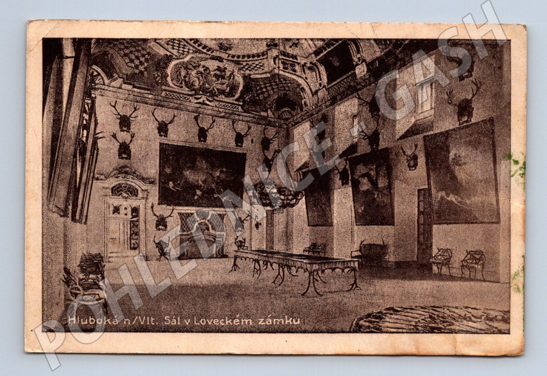 Hluboká nad Vltavou - Sál v Loveckém zámku, stará pohlednice