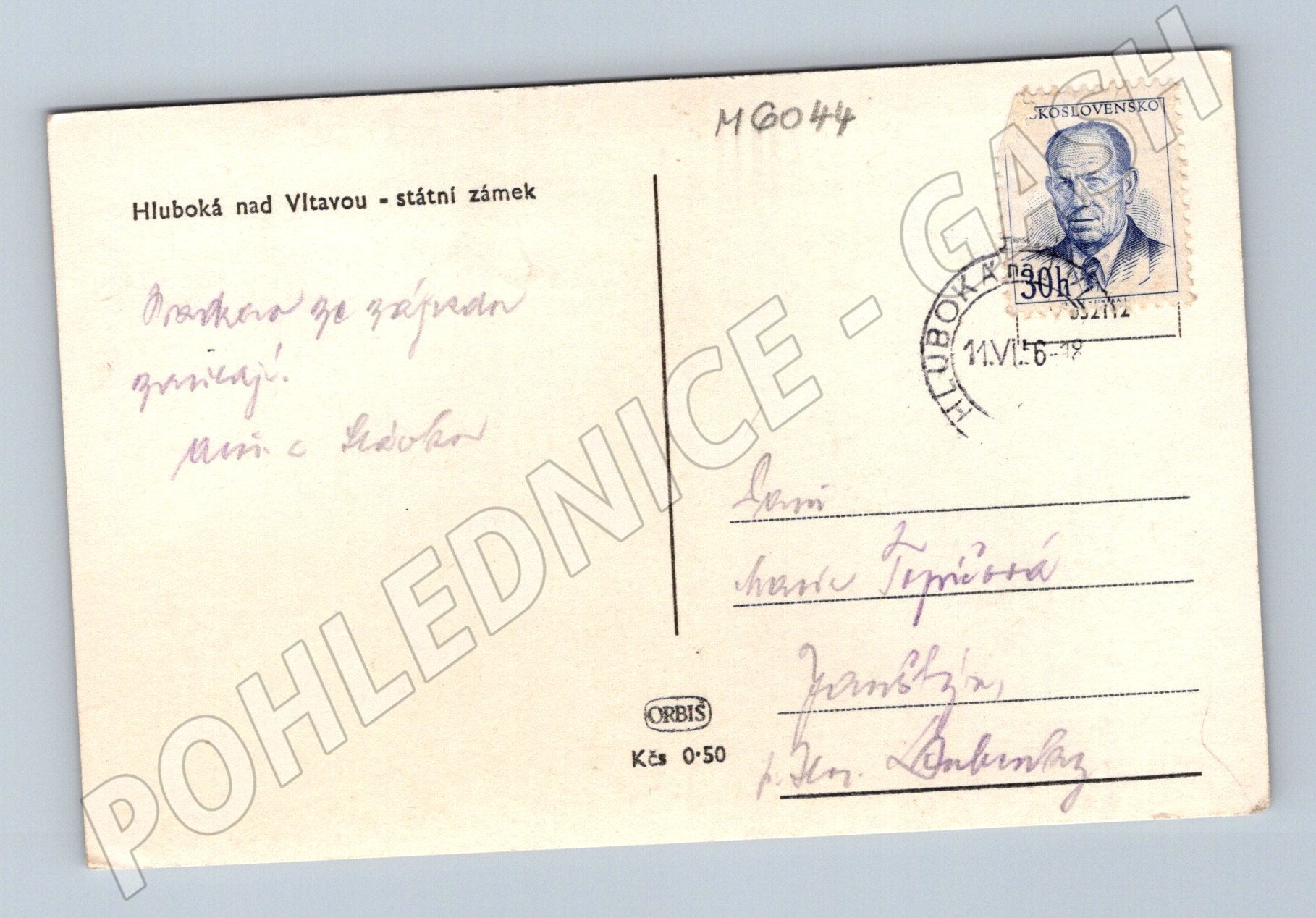 Nabízím originální dobovou pohlednici zobrazující státní zámek Hluboká nad Vltavou. Pohlednice je černobílá, v pěkném stavu, s drobným opotřebením odpovídajícím stáří. Na zadní straně je krátká rukopisná zpráva, adresa a poštovní známka s razítkem z roku 1979. Jedná se tak nejen o krásnou památku na významný český zámek, ale i o cenný sběratelský artefakt dokumentující poštovní historii a dobovou korespondenci. Vhodné pro sběratele pohlednic, zájemce o historii českých památek či milovníky architektury. Rozměry klasického formátu, vydavatel ORBIS, č. 0-50.