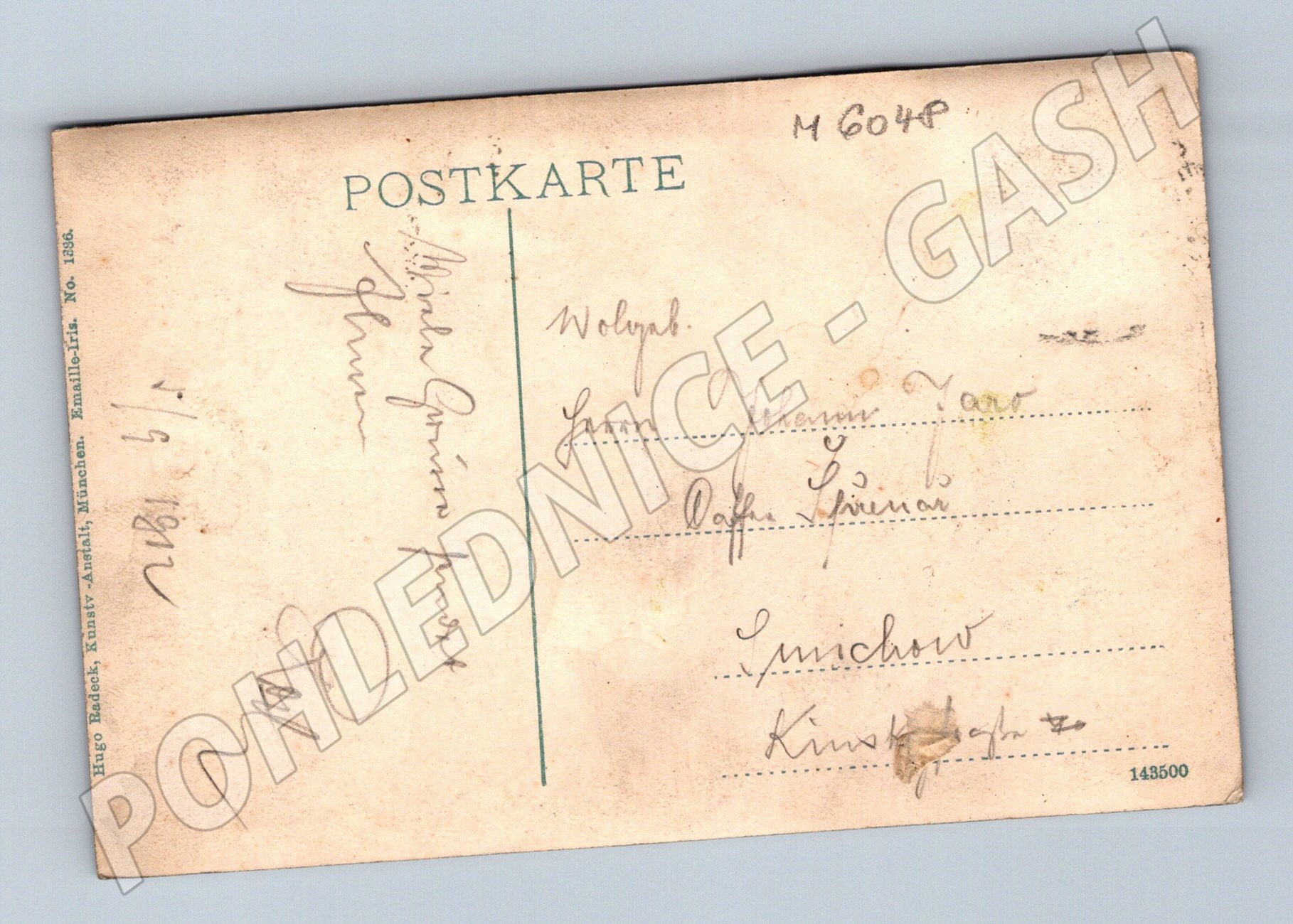Historická pohlednice znázorňující Schloss Frauenberg bei Budweis (Zámek Hluboká nad Vltavou u Českých Budějovic). Pohlednice byla vydána pravděpodobně na počátku 20. století, čemuž odpovídá malý formát a styl tisku. Pohlednice je prošlá poštou, s původním zápisem a adresou na zadní straně. Vydavatel: Hugo Rudol, Kunst-Anstalt, München, číslo 143500. Pohlednice je v zachovalém stavu, místy stopy stáří a běžného opotřebení. Sbírkově zajímavý kousek s krásným pohledem na známý zámek a historickou atmosférou.