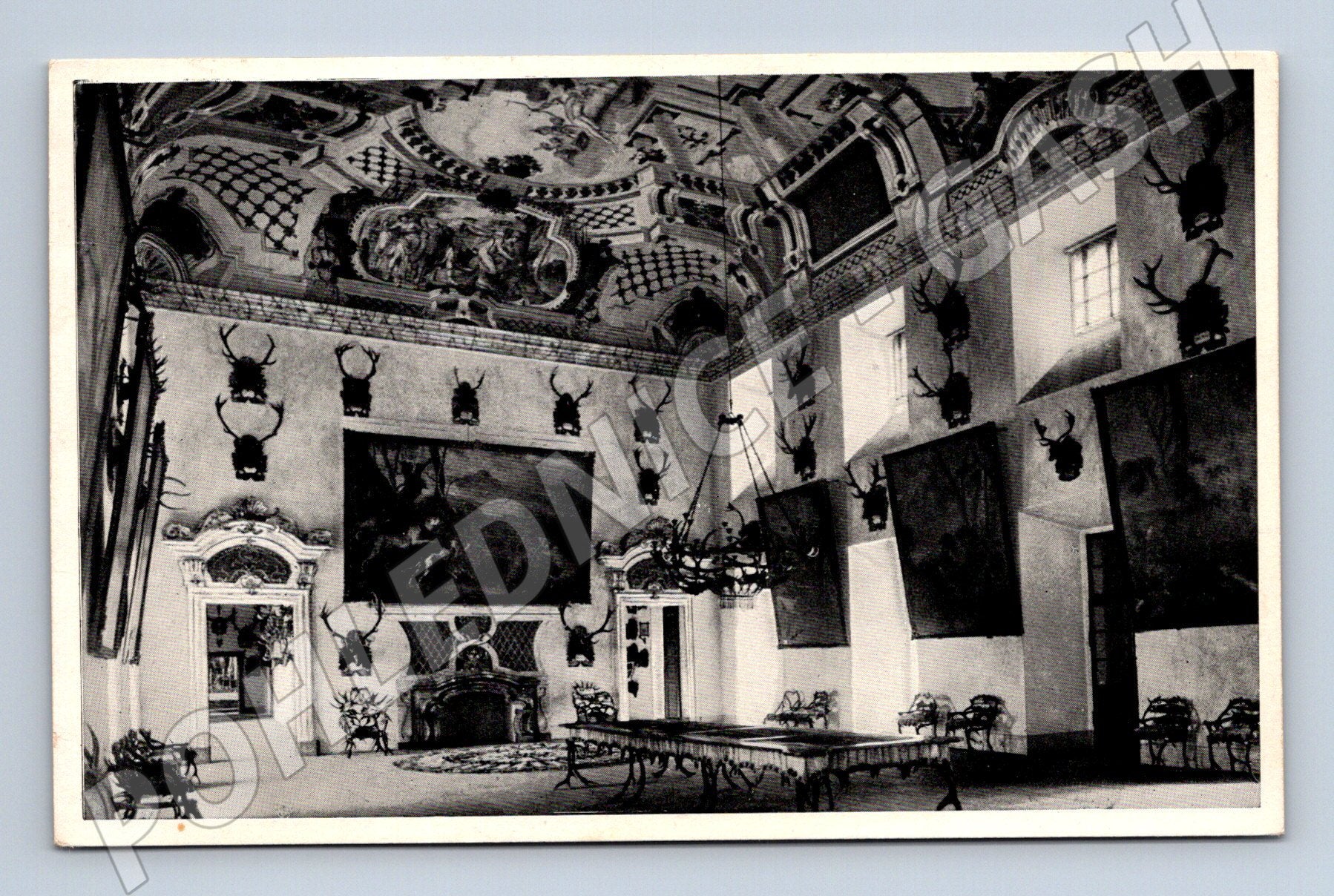 Zámek Hluboká nad Vltavou – hlavní sál loveckého zámku Ohrady, historická pohlednice