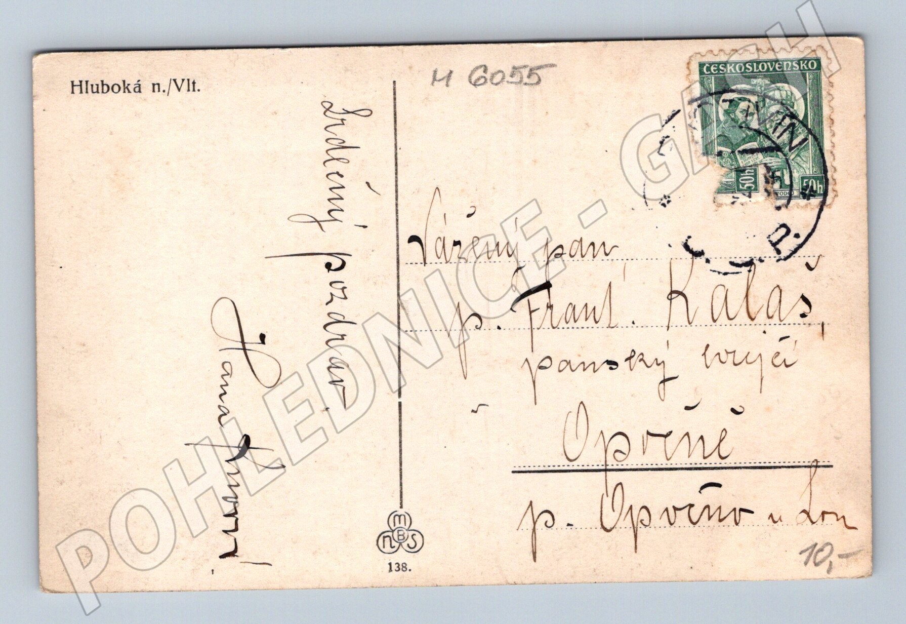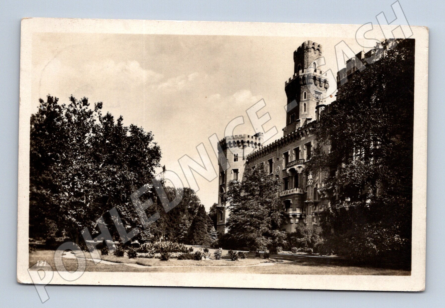 Originální stará pohlednice zobrazující zámek Hluboká nad Vltavou. Na pohlednici je černobílý záběr na monumentální stavbu s rozlehlým parkem v popředí. Na zadní straně je ručně psaný text, známka Československo a jasně čitelná adresa. Pohlednice je prošlá poštou a má drobné známky stáří, které přidávají na historické hodnotě. Ideální pro sběratele pohlednic, milovníky architektury a historie, případně jako dekorativní prvek. Rok odeslání dle známky odhad 1. polovina 20. století.