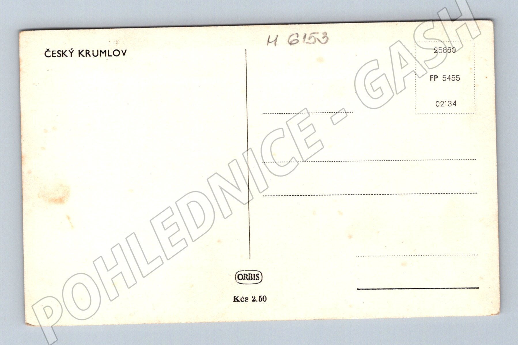 Originální stará pohlednice s černobílým panoramatickým pohledem na historické město Český Krumlov. V popředí dominuje ikonický zámek Český Krumlov, kostel svatého Víta a malebné okolí s řekou Vltavou, které tvoří jedinečný celek UNESCO památky. Pohlednice je neprošlá poštou, ve velmi dobrém sběratelském stavu, zadní strana je čistá, s vytištěným názvem města a vydavatelem Orbis. Ideální přírůstek do sbírky pohlednic zaměřených na české hrady a zámky či významná historická města.