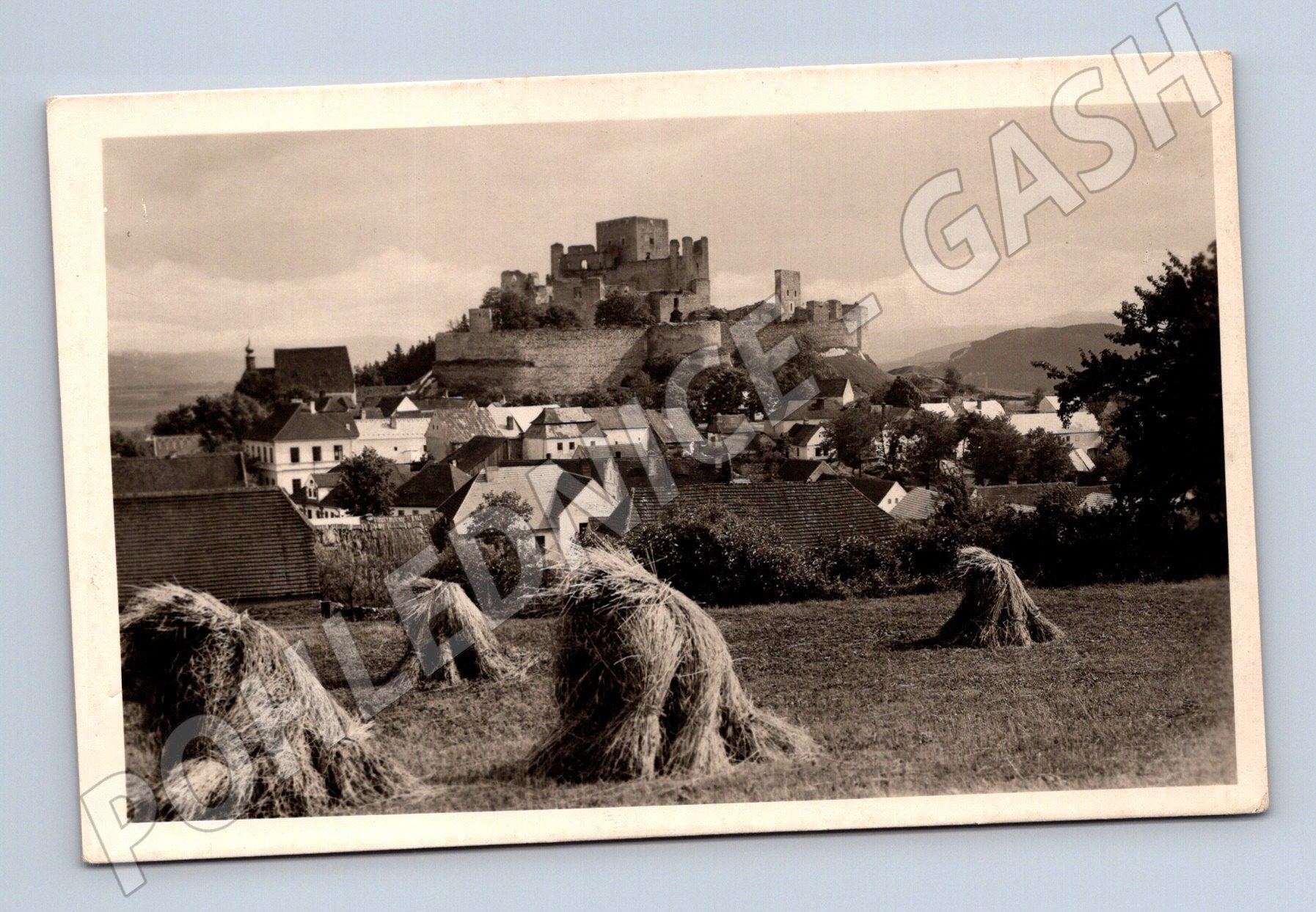 Originální černobílá pohlednice s motivem hradu Rabí v oblasti Šumavy. Na přední straně je krásný pohled na dominantní zříceninu hradu Rabí, pod kterým se rozprostírá historická vesnice a okolní krajina se stohy sena na louce. Jedná se o sběratelsky zajímavou pohlednici s nápisem Šumava - Hrad Rabí na zadní straně. Pohlednice je dosud neprošlá poštou, ve velmi dobrém stavu, bez popisu a poškození. Vydal V. Pavel, Sušice. Vhodná pro sběratele hradních motivů i milovníky Šumavy a české historie.