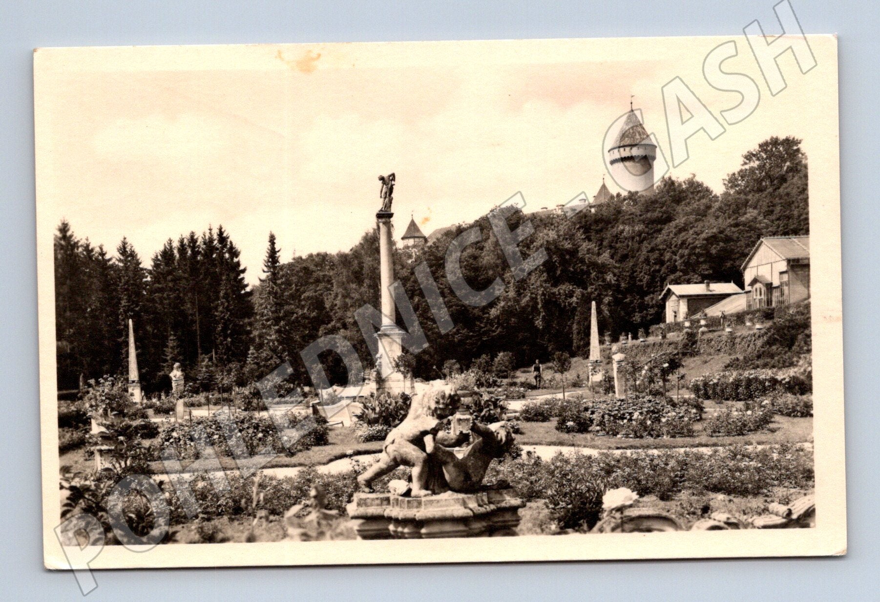 Originální černobílá pohlednice s motivem zámku Konopiště. Na přední straně pohlednice je krásný pohled na zámek s věží a rozkvetlými zahradami v popředí, včetně dramatických soch a fontán. Zadní strana obsahuje ručně psaný vzkaz, adresu a čitelnou známku z období Československa. Výborný sběratelský stav, velmi zajímavé pro milovníky historických pohlednic, památek a české historie. Vhodné i jako dárek či dekorace do sbírky pohlednic hradů a zámků.