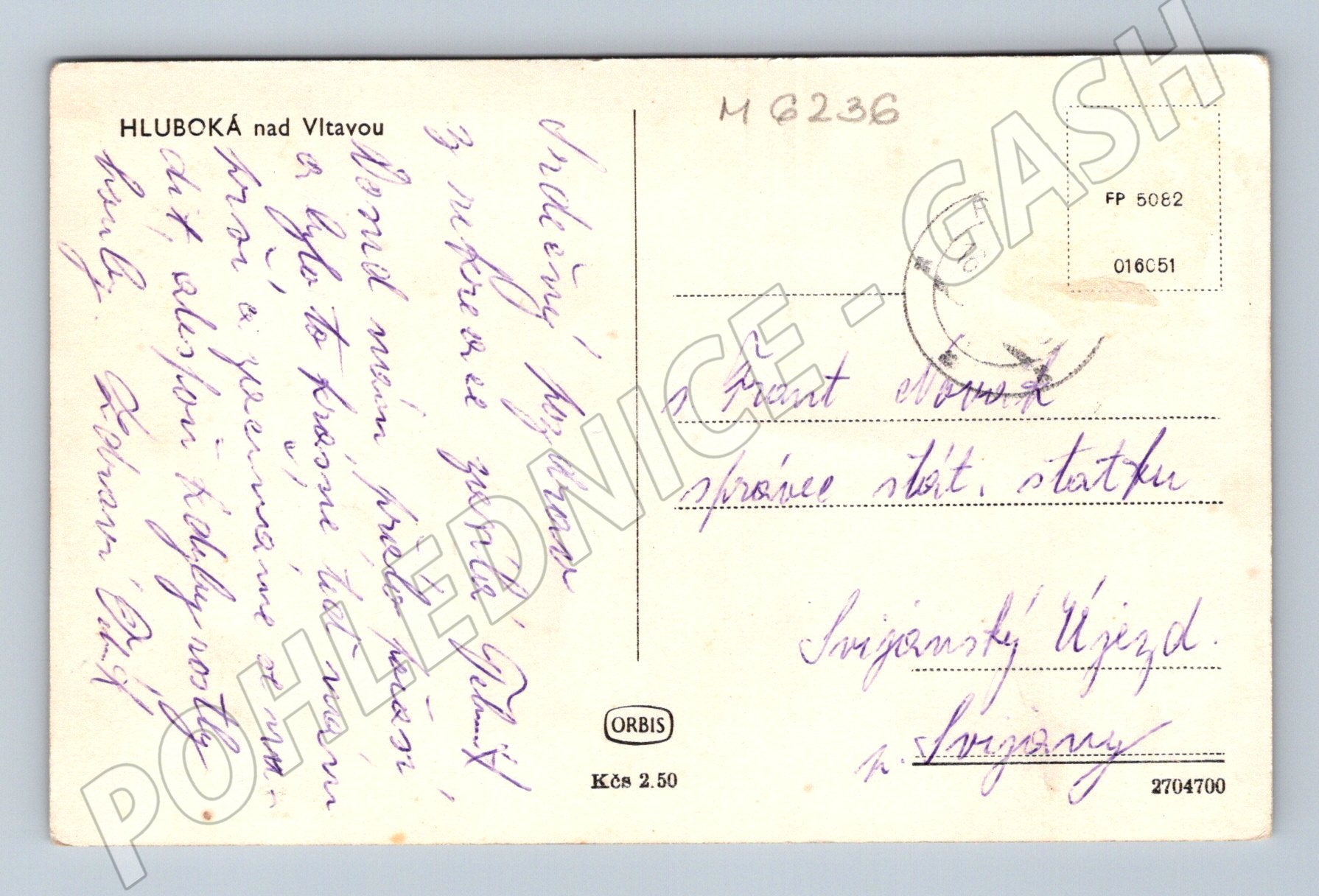 Pohlednice Hluboká nad Vltavou zámek čb odesláno (M6236)
