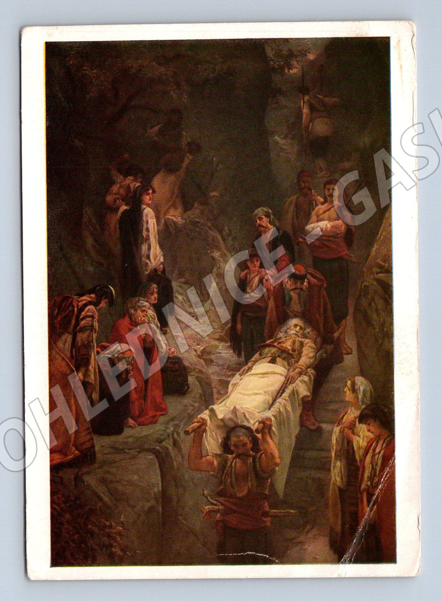 Nabízím starou pohlednici s reprodukcí slavného obrazu Raněný Černohorec od malíře Jaroslava Čermáka (1830–1878). Pohlednice zachycuje dramatickou historickou scénu z Balkánu a je vhodná pro sběratele malířských pohlednic, historických námětů i milovníky klasického umění. Pohlednice je v zachovalém stavu se známkami stáří v podobě drobných ohybů a stop po manipulaci. Na zadní straně je tištěné jméno autora a název díla, nechybí popis a místo pro známku i adresu. Výborný sběratelský kousek s uměleckou hodnotou.