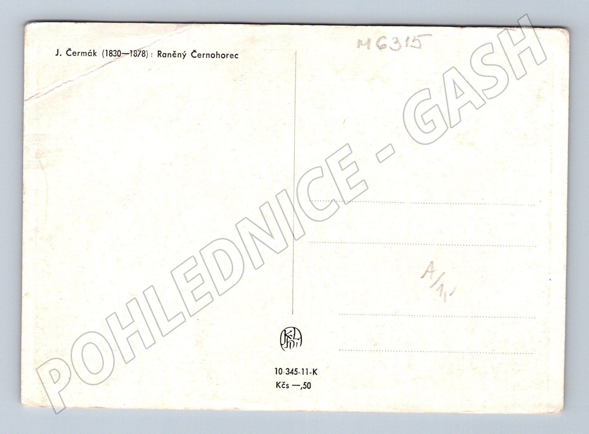 Pohlednice J. Čermák: Raněný Černohorec – historická malba