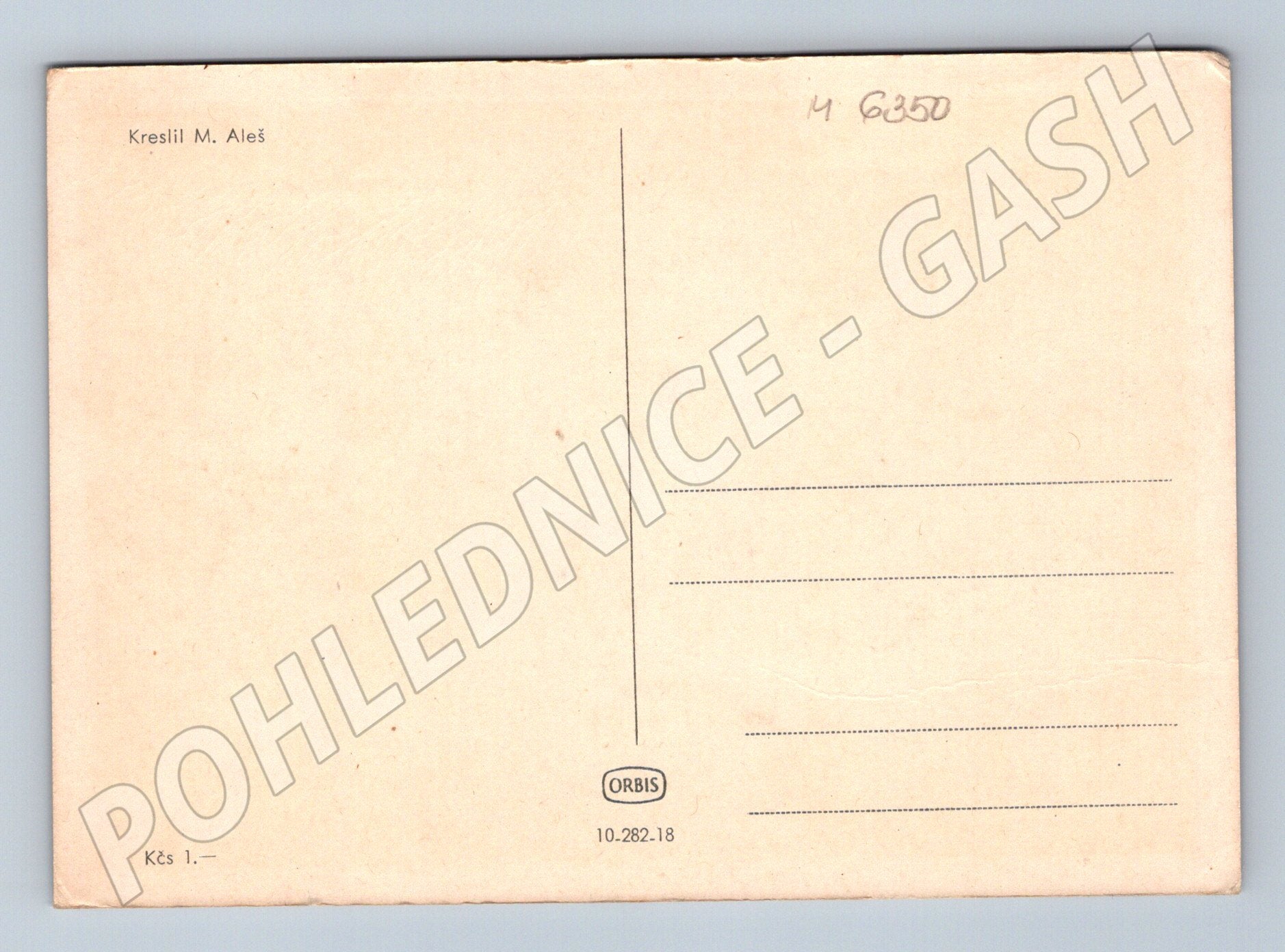 Originální pohlednice s kresbou malíře Mikoláše Alše. Na přední straně je dílo s názvem Svatá Markyta hodila srp do žita a vyobrazení červencové scény s venkovskou tematikou. Pohlednice je provedena v černobílé kresbě, má znatelný retro vzhled a patří ke sběratelsky cenným předmětům z oblasti českého umění a malířství. Na zadní straně je možnost nadepsání adresy, v rohu je označení vydavatele Orbis a cena 1 Kčs. Pohlednice je skvělou volbou pro sběratele českých pohlednic, obdivovatele Mikoláše Alše či zájemce o staré umělecké tiskoviny.