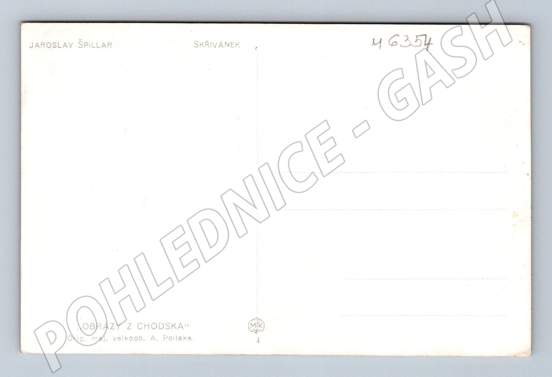 Originální pohlednice ze série Obrazy z Chodska podle předlohy Jaroslava Špillara, konkrétně motiv Skřivánek . Pohlednice zachycuje skupinu lidí v tradičních chodských krojích na krajině. Barevná litografie, rozměr klasický malý formát, neprošlá poštou. Ze spodní strany je uvedeno: OBRAZY Z CHODSKA , orig. maj. velkoob. A. Pollaka. Velmi dekorativní a sběratelsky zajímavý pohled do života a kultury Chodska na počátku 20. století. Stav velmi dobrý, viz foto.