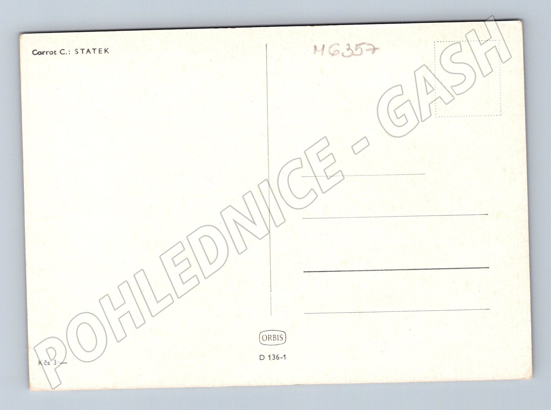 Pohlednice se zobrazením uměleckého díla – malby venkovského statku, autor Corot C., s názvem „Statek“. Na přední straně pohlednice je malebný venkovský motiv s domem, postavami a koněm v lese. Pohlednice nebyla použita, je ve velmi pěkném stavu. Vydavatelství Orel, označení D 16-1. Cena 3 Kčs uvedena dole. Zadní strana nepopsaná, připravena k odeslání či sběratelským účelům. Ideální pro sběratele pohlednic s tématikou malířství a venkova.