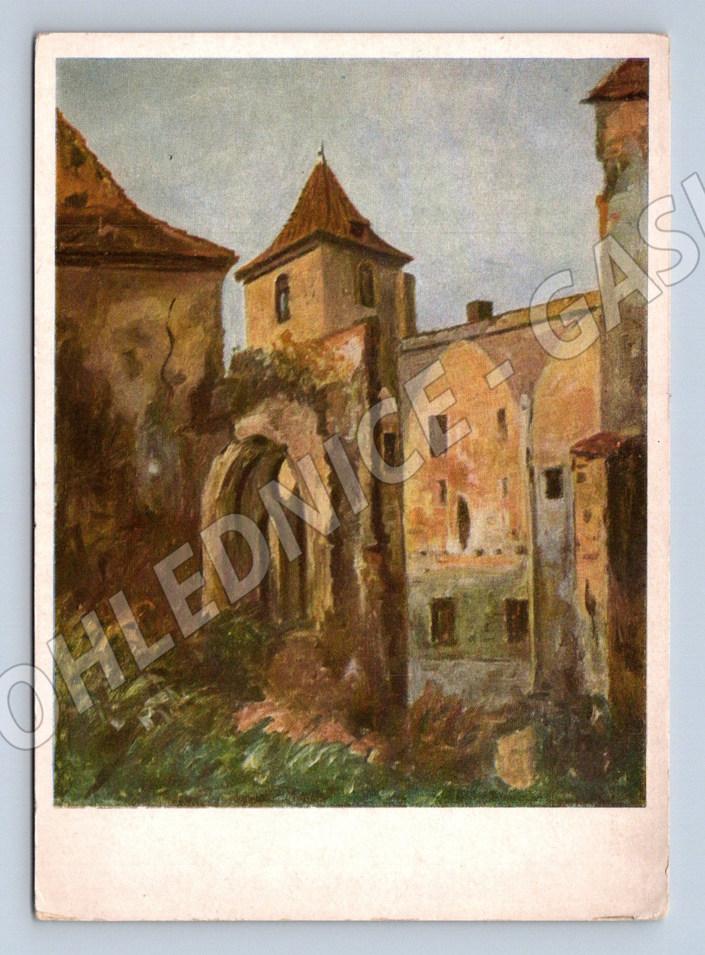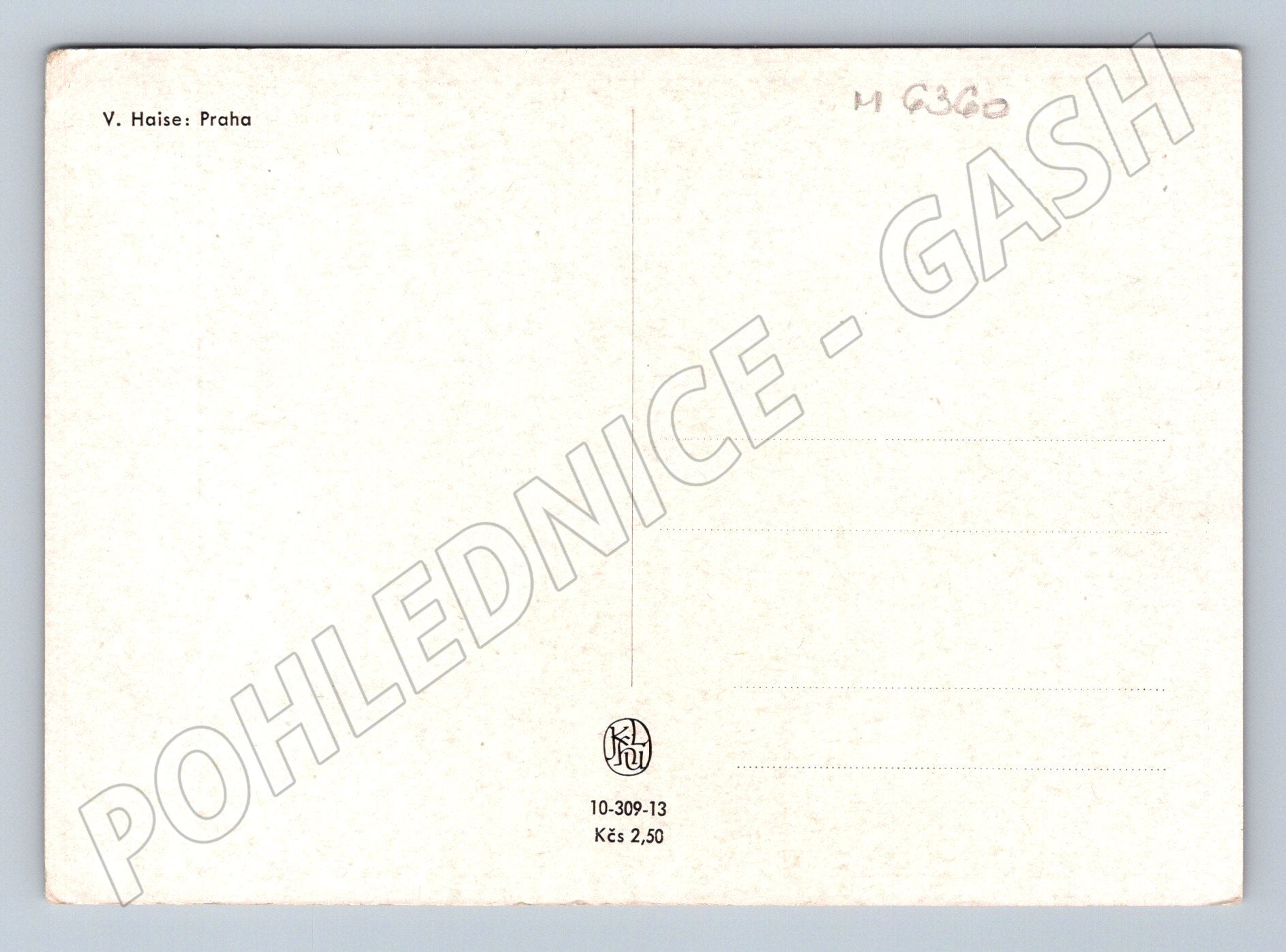 Originální pohlednice s malovaným motivem historického objektu – pravděpodobně hradu nebo zámku. Pohlednice pochází z Prahy, autorem ilustrace je V. Haise. Zadní strana neprošlá poštou, čistá, v dolní části je původní tisková značka a cena. Tato pohlednice je zajímavým sběratelským kouskem pro milovníky historických památek a architektury. Stav velmi dobrý, odpovídá stáří.