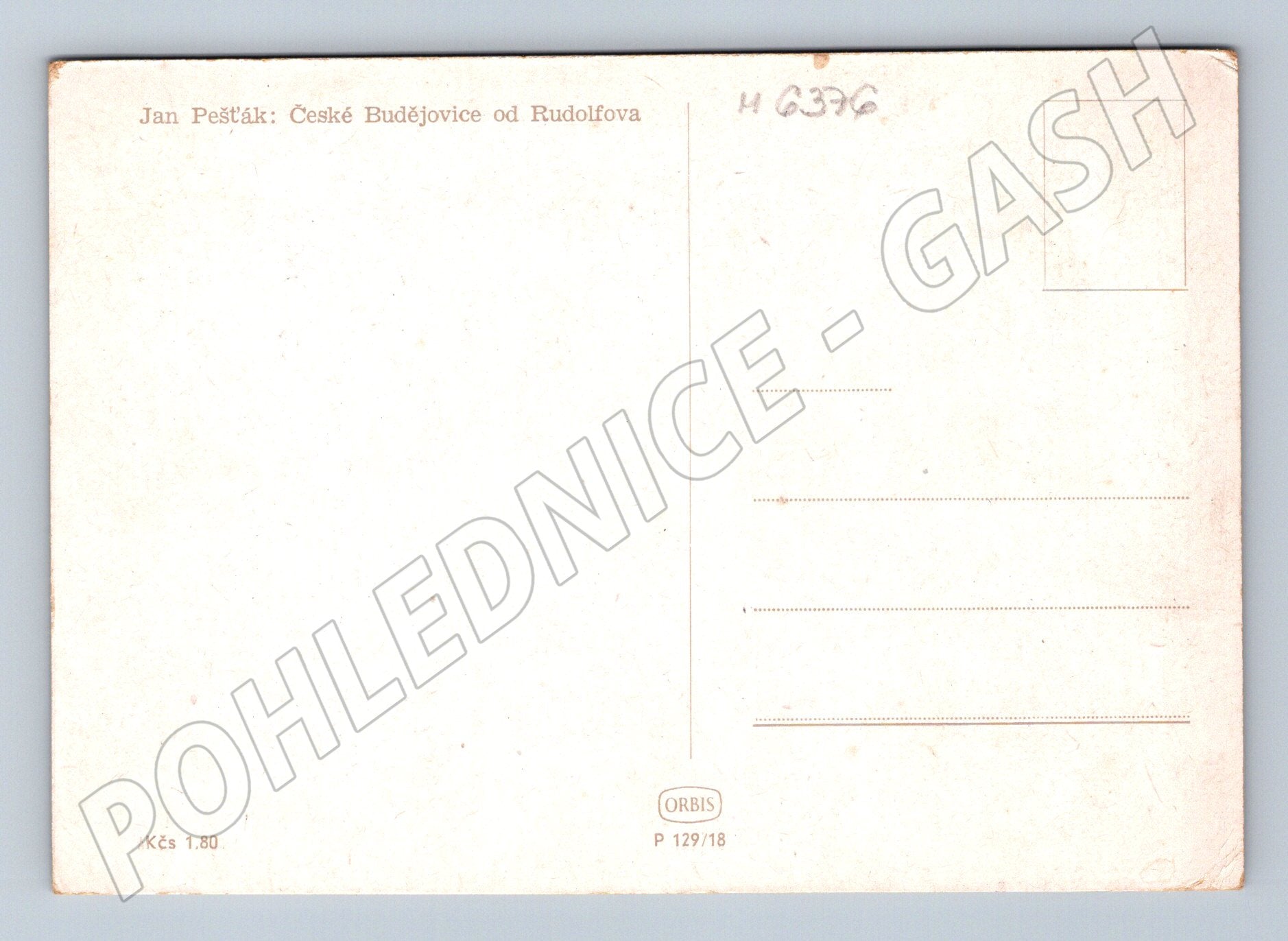 Originální pohlednice s reprodukcí malby od Jana Pešťáka – České Budějovice od Rudolfova. Pohlednice zachycuje malebnou scenérii jihočeské krajiny s pohledem na České Budějovice, kolem zlatých lánů a pracujících lidí na poli. Krásně ztvárněné pastelové barvy a měkké linie podtrhují atmosféru venkovského života a vzdálené panorama města. Na zadní straně nechybí informace o autorovi i vydavatelství (Orbis, P 129/18), cena 1,80 Kčs. Skvělý sběratelský kousek pro milovníky malovaných pohlednic i jihočeských motivů. Pohlednice je ve velmi dobrém stavu, nepopsaná, bez poškození.
