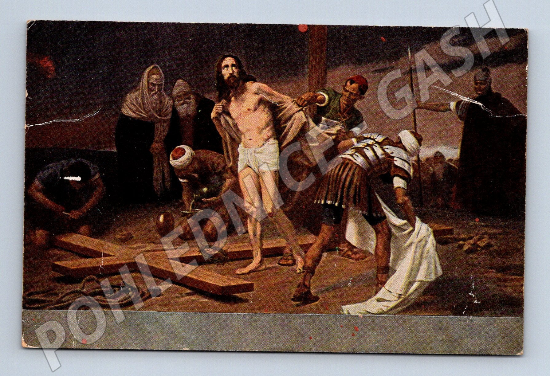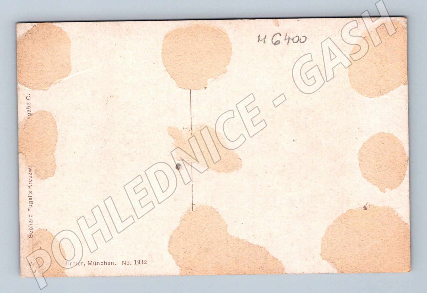 Originální stará pohlednice s reprodukcí malby od Gebharda Fugela s názvem Kreuzweg (Křížová cesta). Pohlednice zachycuje dramatickou biblickou scénu ukřižování. Na zadní straně je uveden vydavatel Hirmer, München, č. 1932. Pohlednice nese silné známky stáří, včetně skvrn, trhlin a opotřebení na hranách. Pohlednice je určena pro sběratele historických a náboženských motivů či milovníky výtvarného umění.