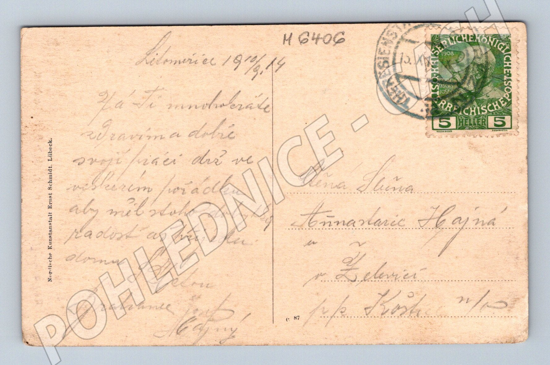 Pohlednice 1914 Roland u Viktoria, Libniče, Rakousko-Uhersko, malý formát